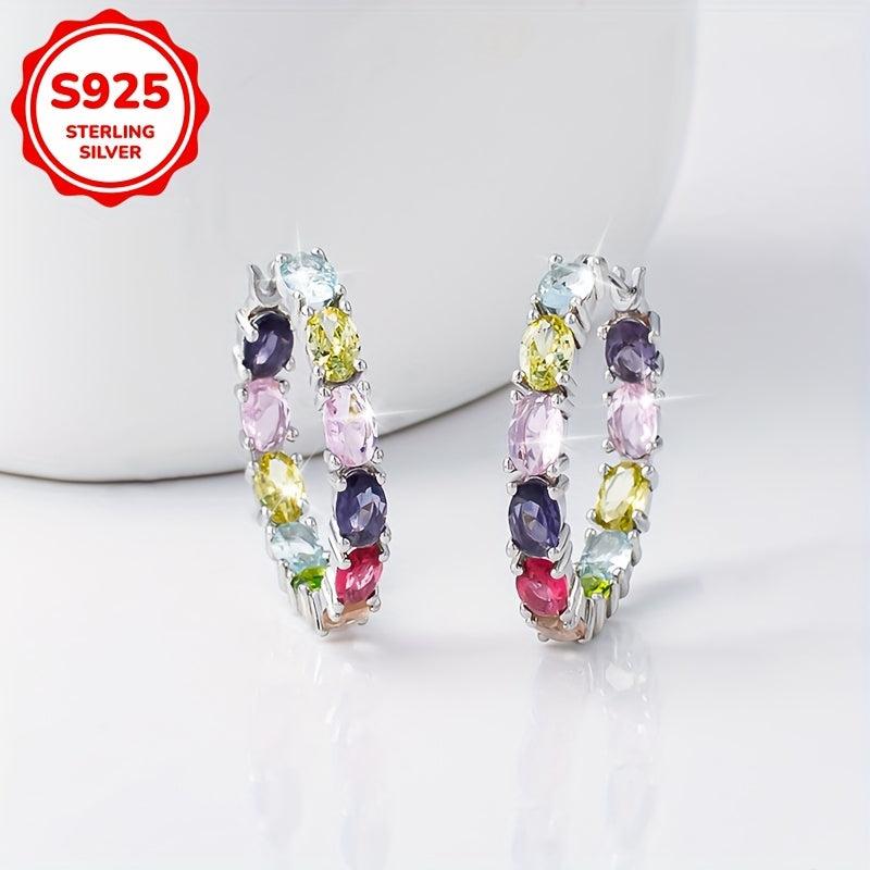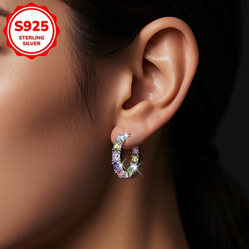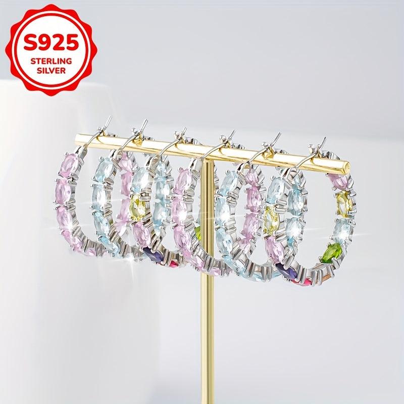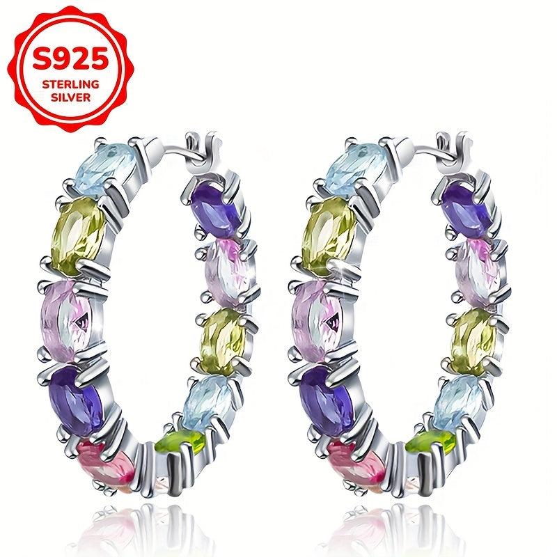 Add a touch of glamour to your look with these stunning hoop earrings. Made with high-quality S925 silver and adorned with colorful rhinestones, these earrings are perfect for parties, banquets, and as a gift.