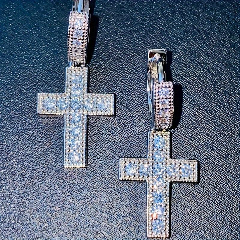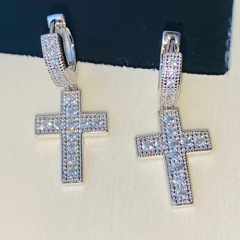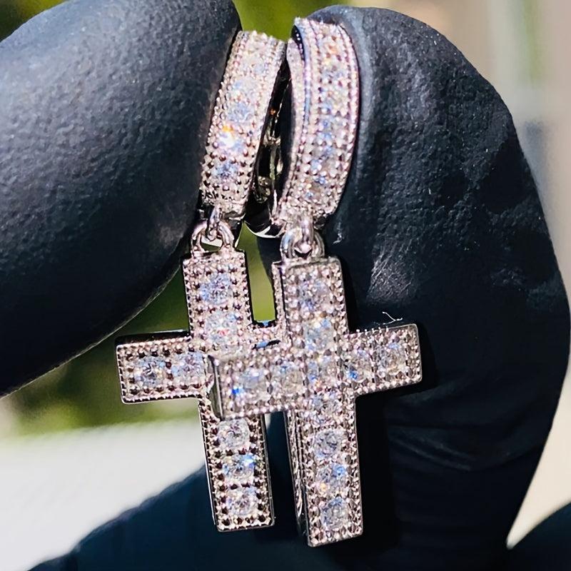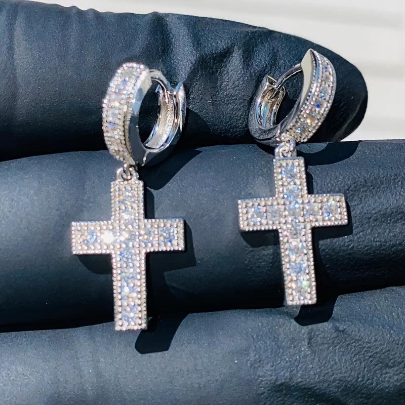 Add an elegant touch to your look with these dangle earrings featuring a beautiful rhinestone cross design. Perfect for engagement, wedding, and party occasions.