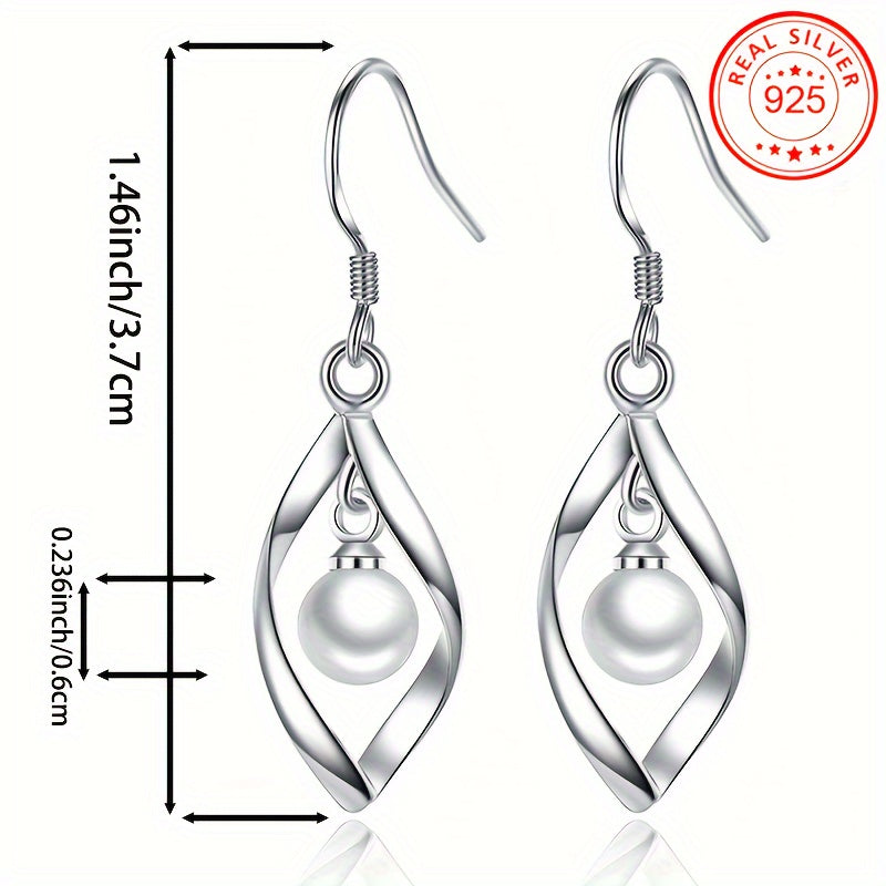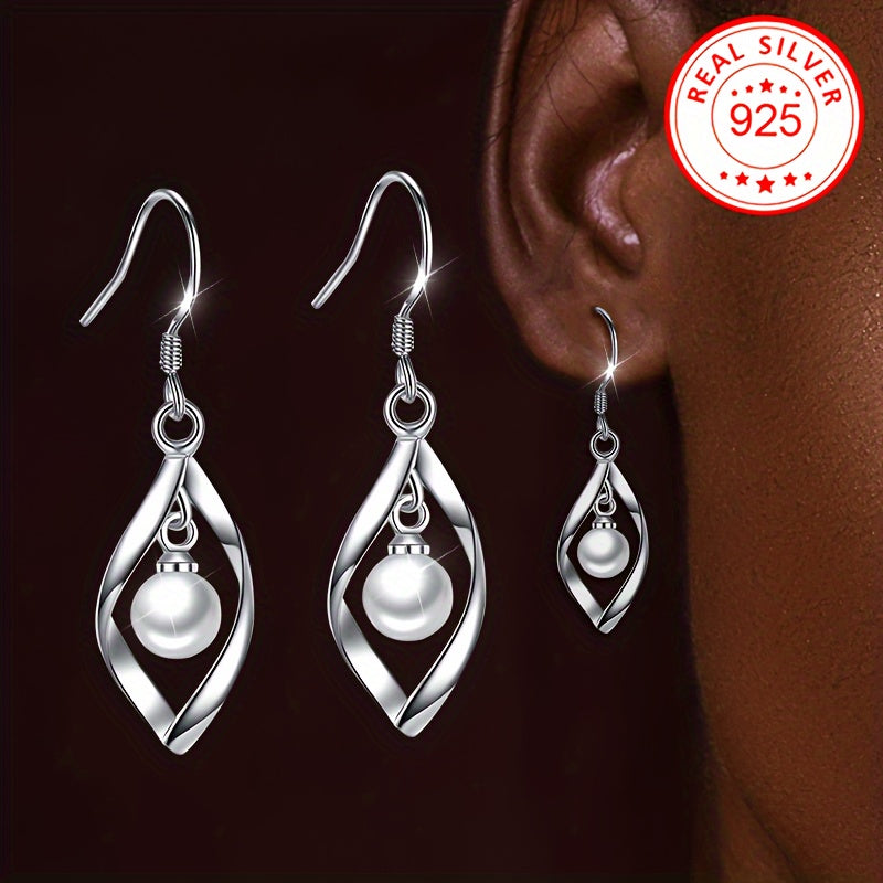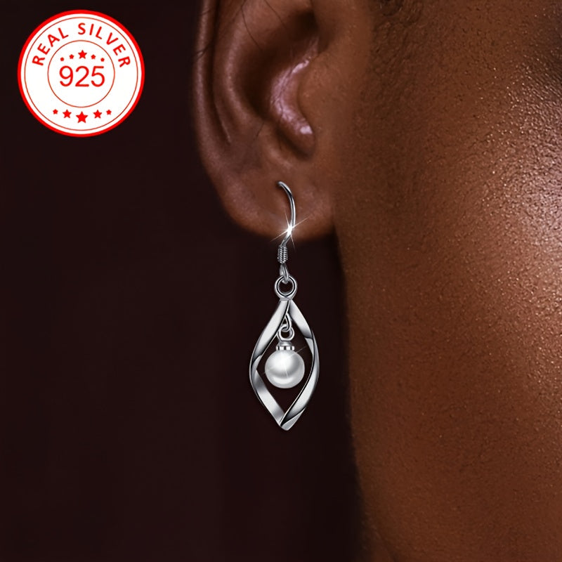 These dangle earrings feature a rhombus hollow design with inlaid shell pearl, perfect for weddings and banquets. Made of low allergy S925 silver.