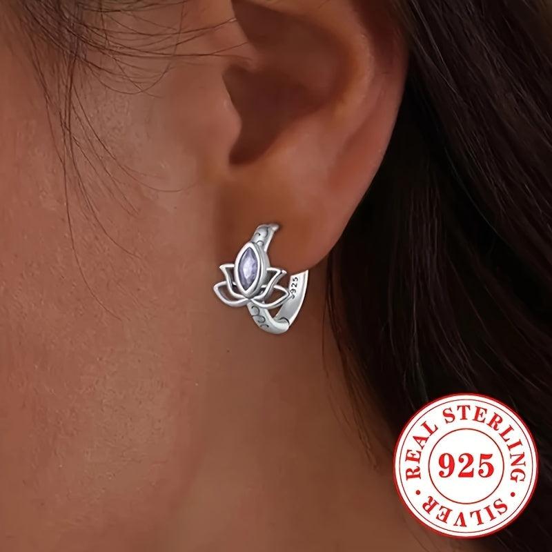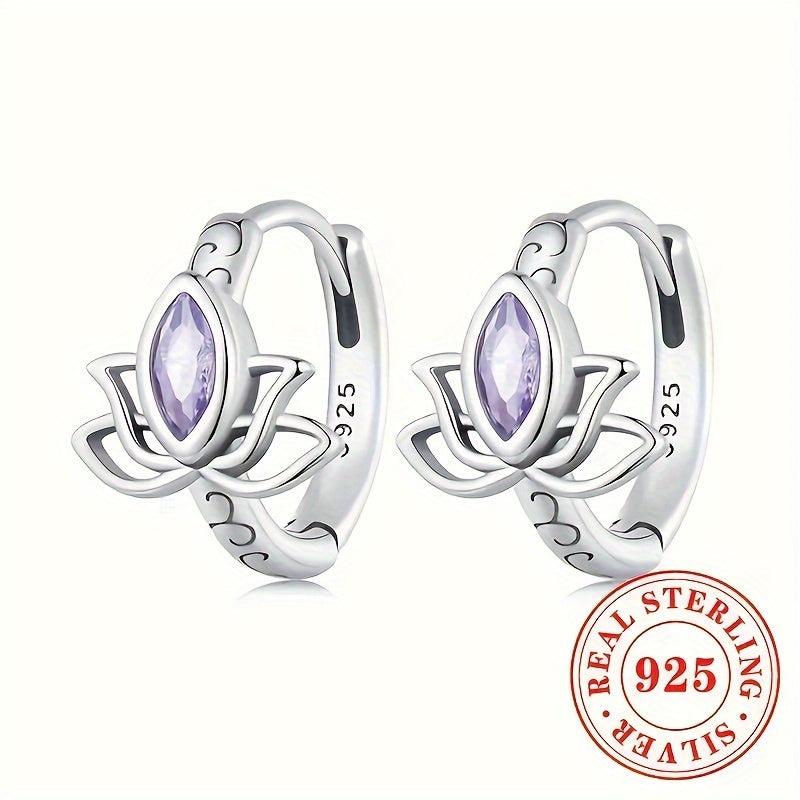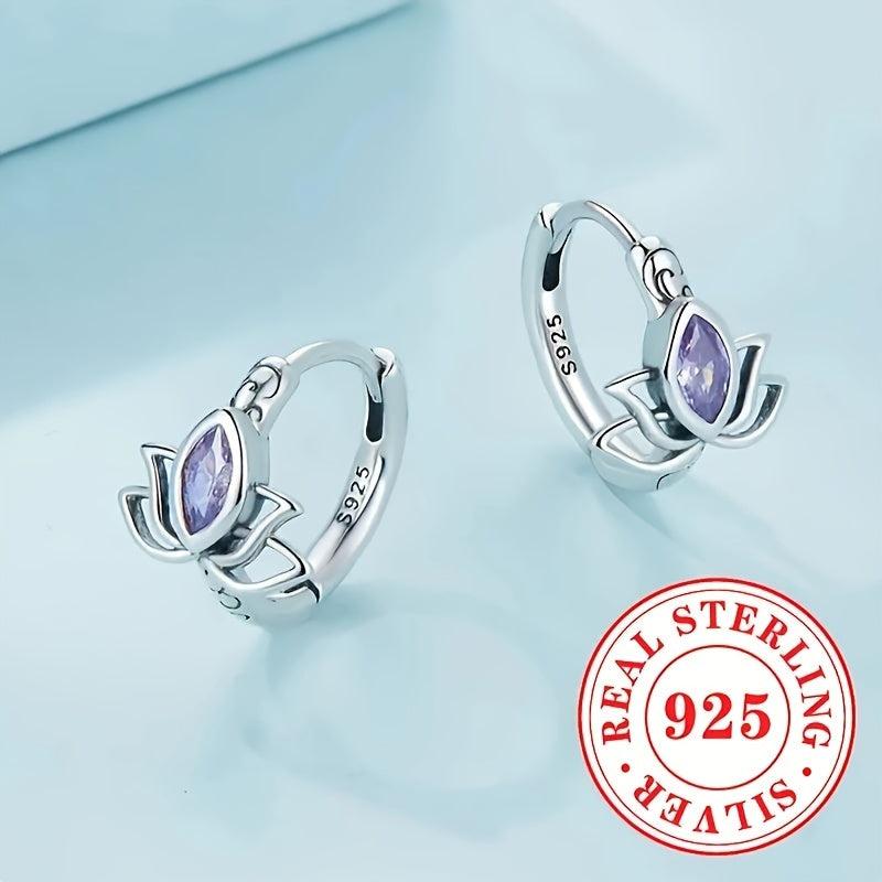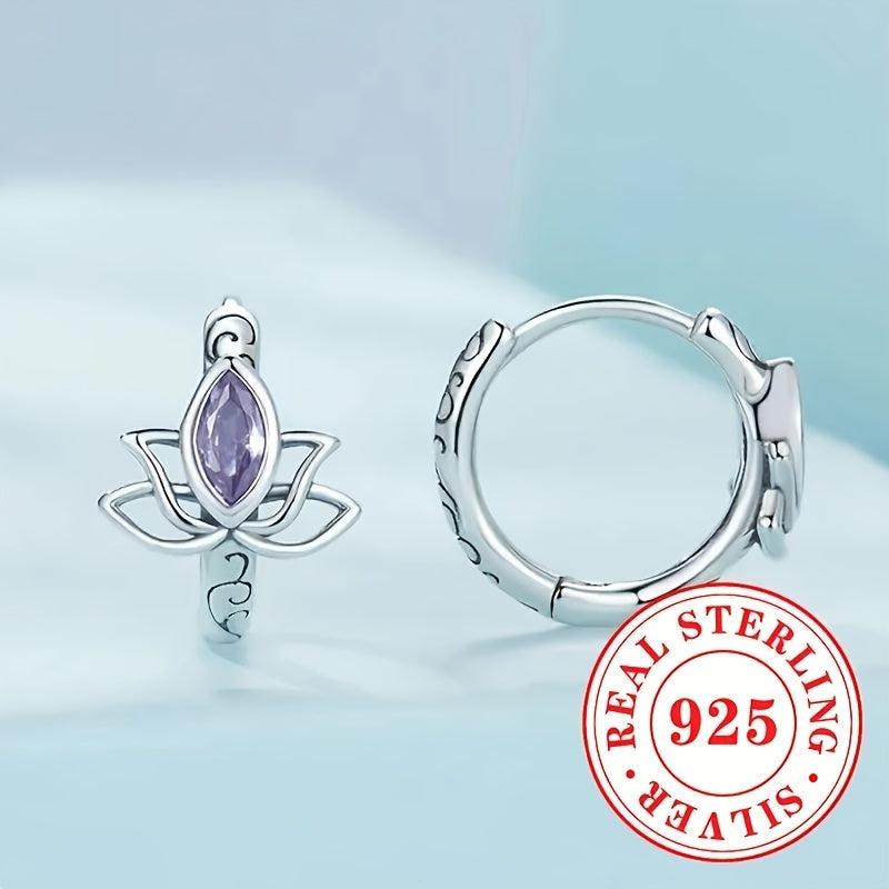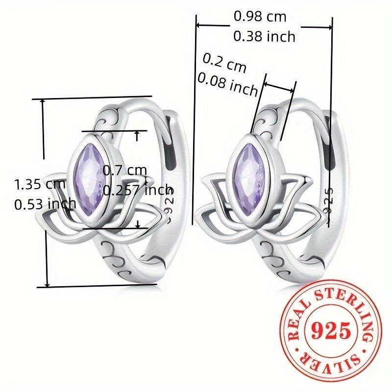 Add a touch of elegance with these lotus-inspired earrings featuring purple gemstones. Crafted from pure S925 silver, these earrings are perfect for yoga enthusiasts.