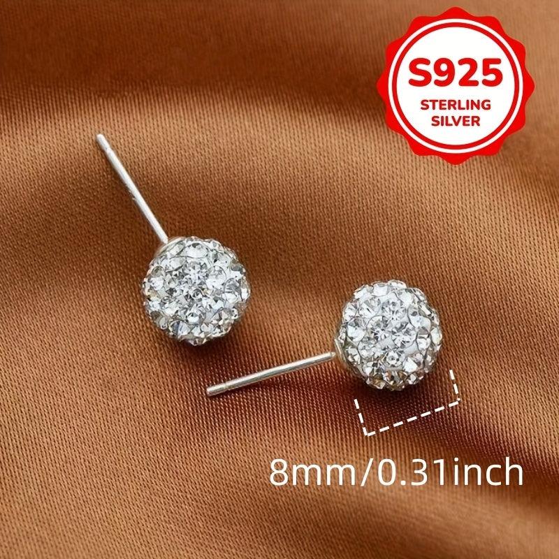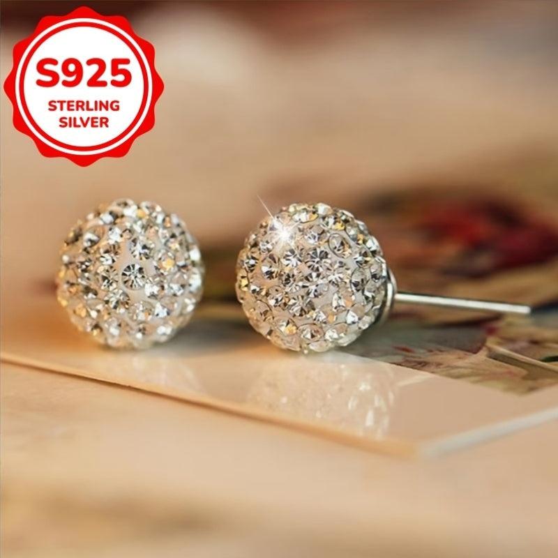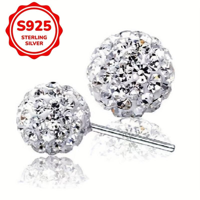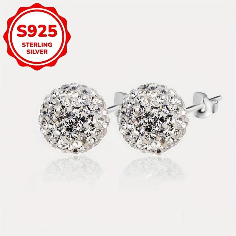 Elevate your look with these trendy Shambhala round ball earrings featuring synthetic zirconia and 925 silver. Perfect for sports and daily wear.