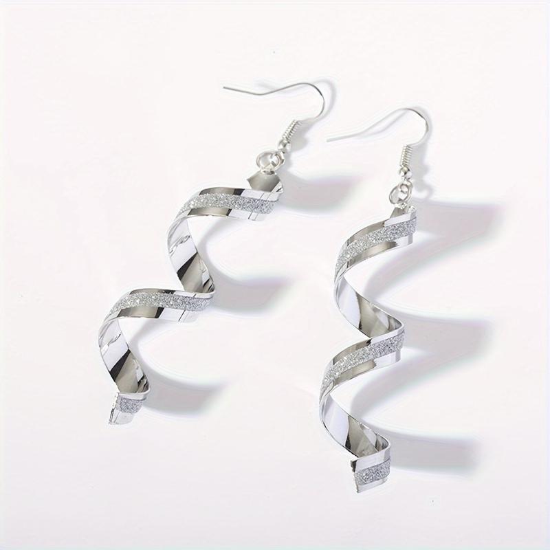 Elevate your style with these trendy long spiral curved wave earrings. Perfect for any occasion, these earrings will add a touch of elegance to your look.