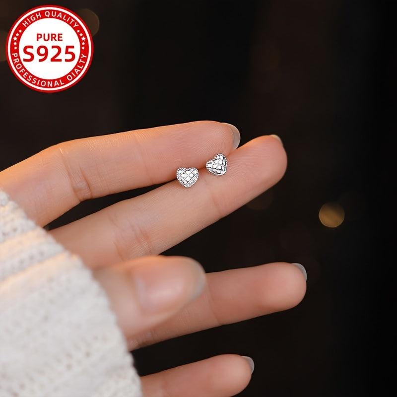 These stylish stud earrings feature a quilted heart design crafted from high-quality 925 sterling silver. Perfect for daily wear, parties, and vacations.