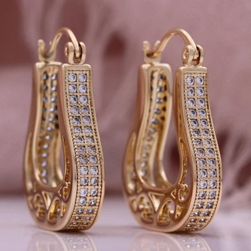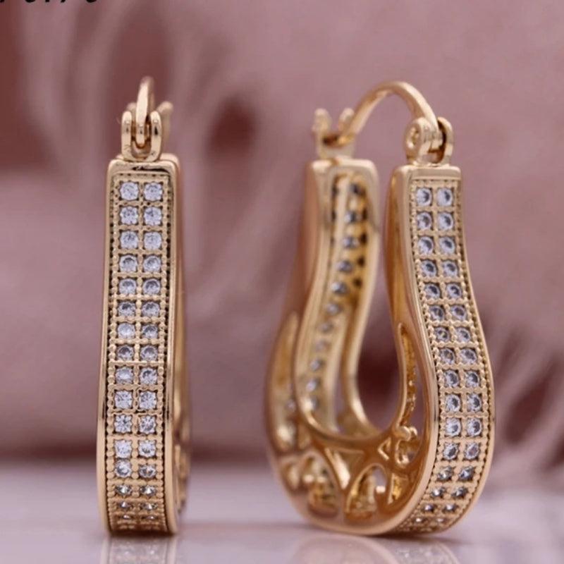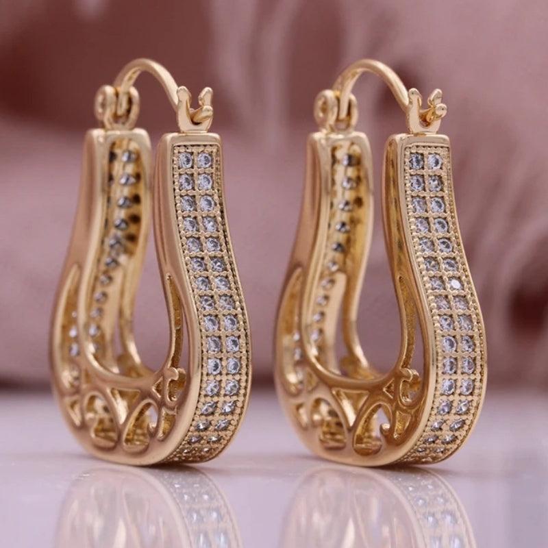 Elegant and luxurious U-shaped earrings adorned with synthetic zirconia crystals are perfect for banquets, weddings, or as a gift for your girlfriend.