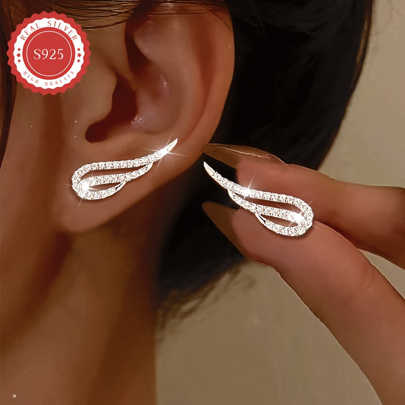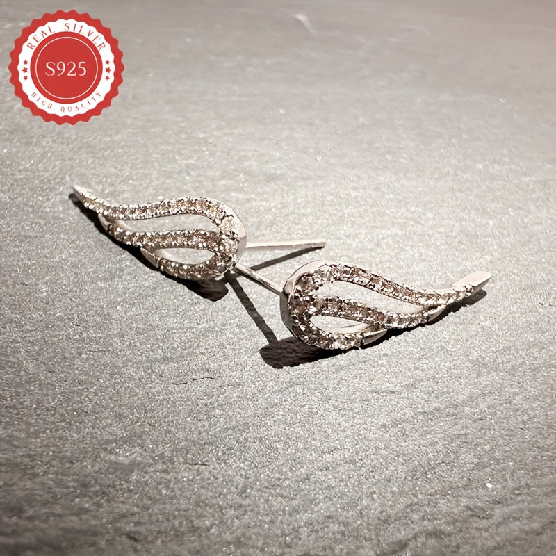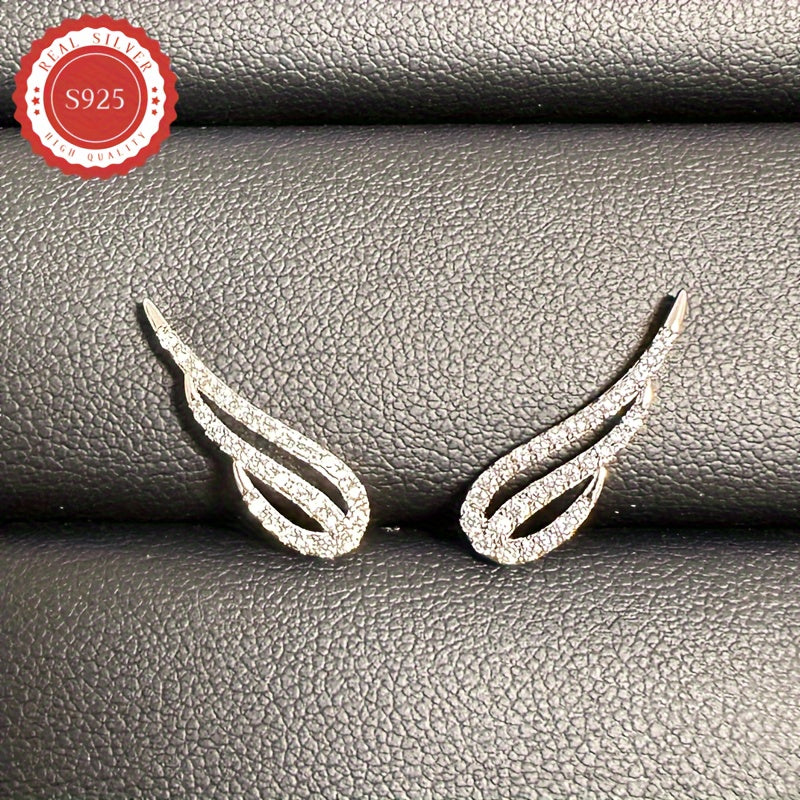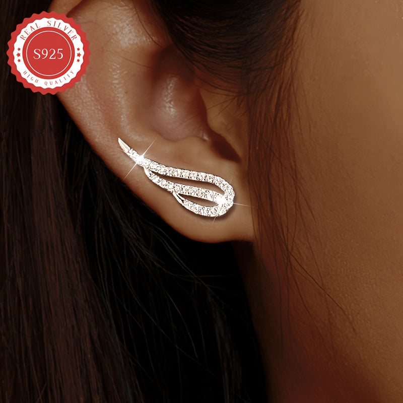 Add a touch of elegance with these wing-shaped earrings featuring a cubic zirconia arrangement. Perfect for vacations, parties, and daily wear. Made of low-allergy S925 silver.