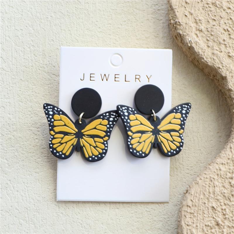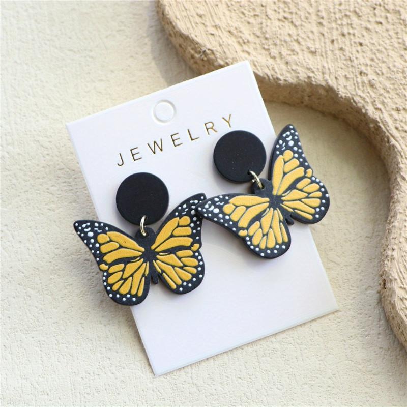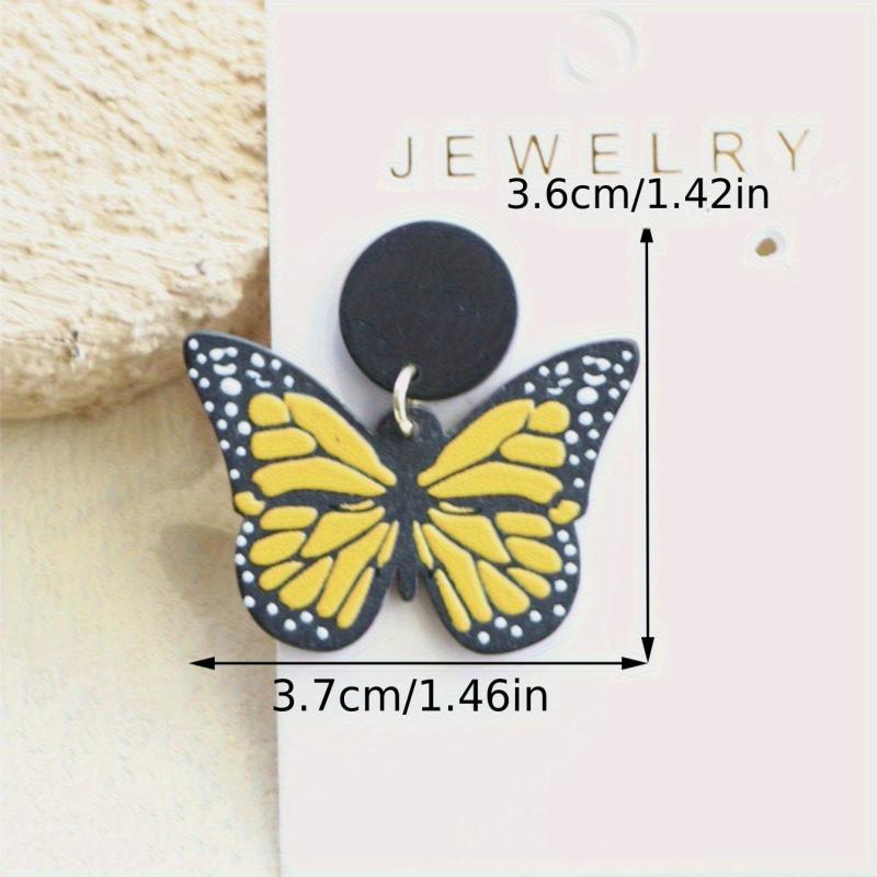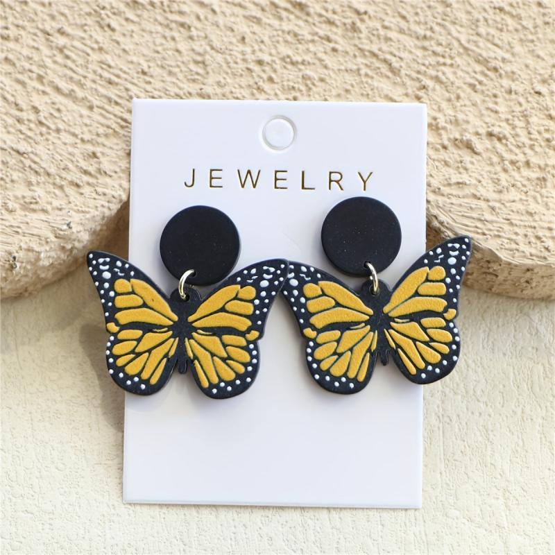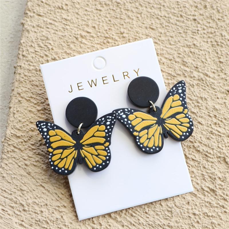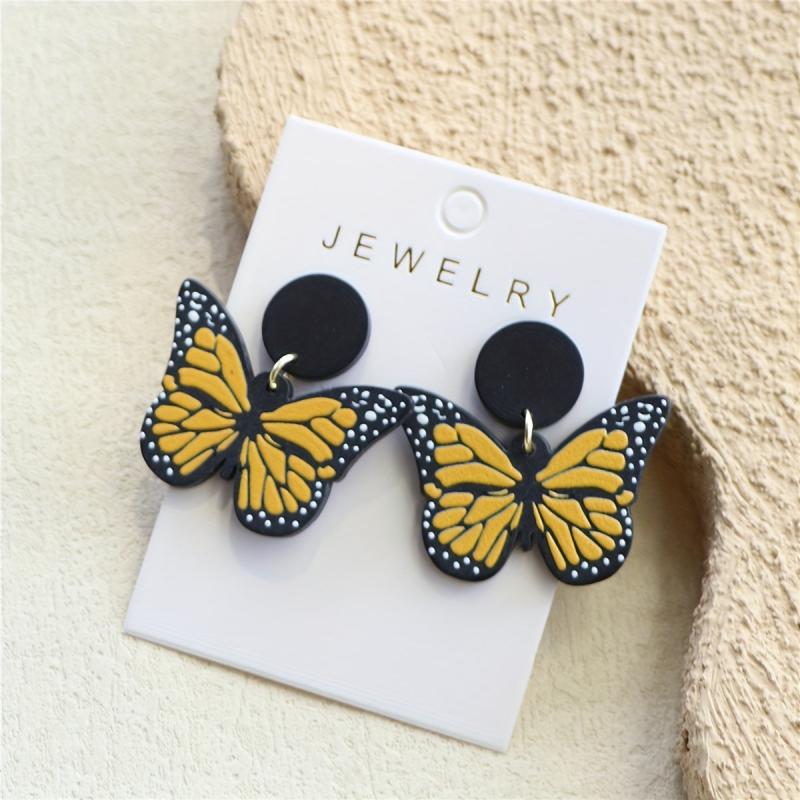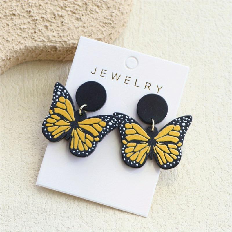 Add a pop of color to your spring and summer outfits with these beautiful butterfly print acrylic earrings. The clay texture adds a unique touch to these earrings.