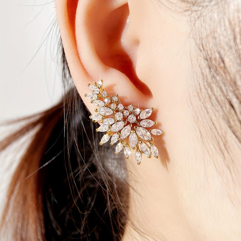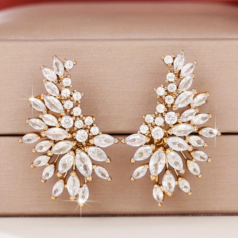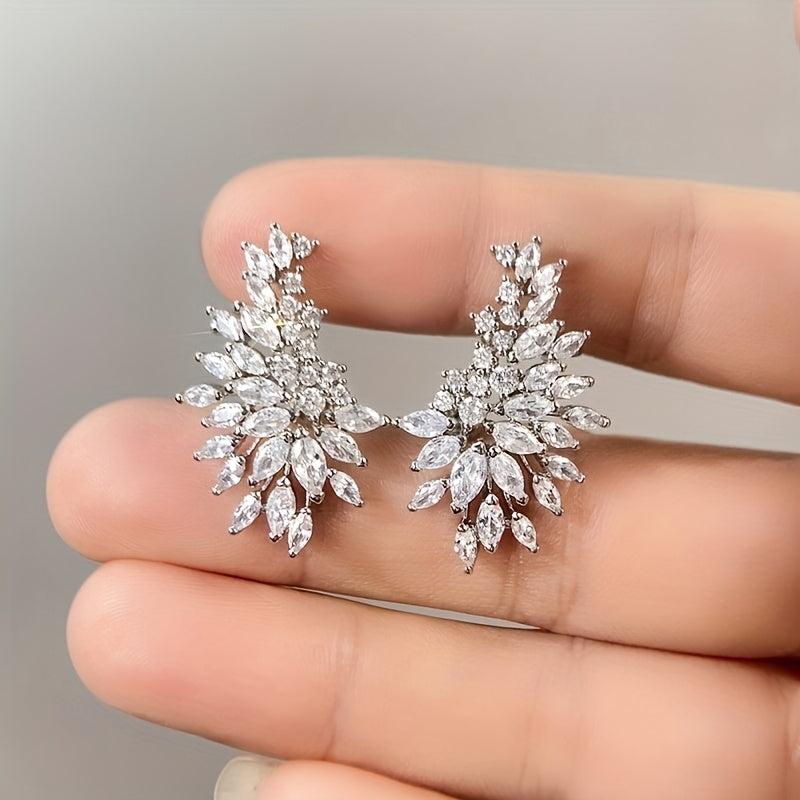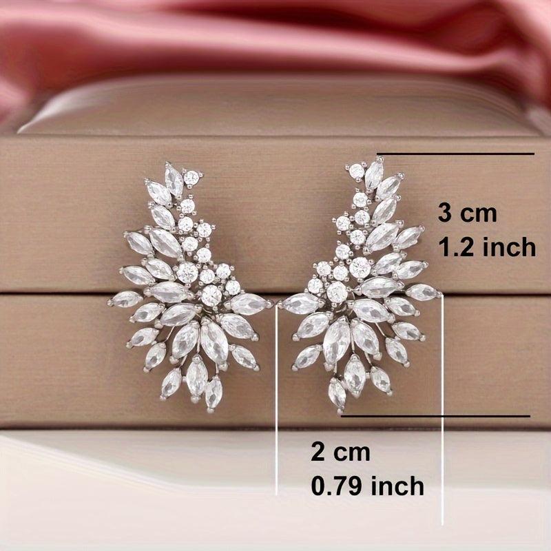 Add a touch of elegance with these stunning flower earrings featuring synthetic zirconia stones. Perfect for weddings, banquets, and Valentine's Day.