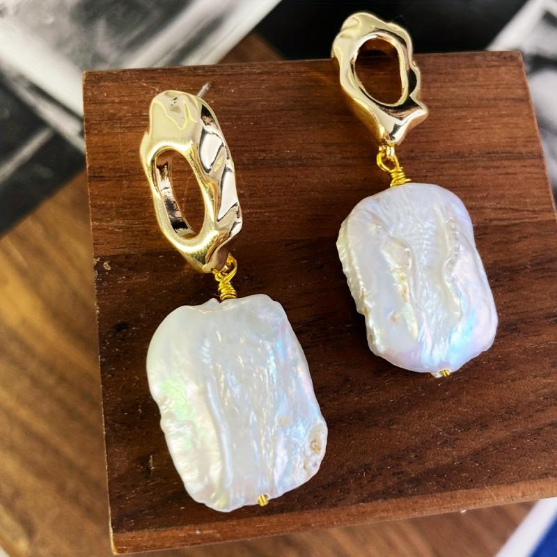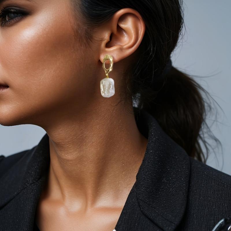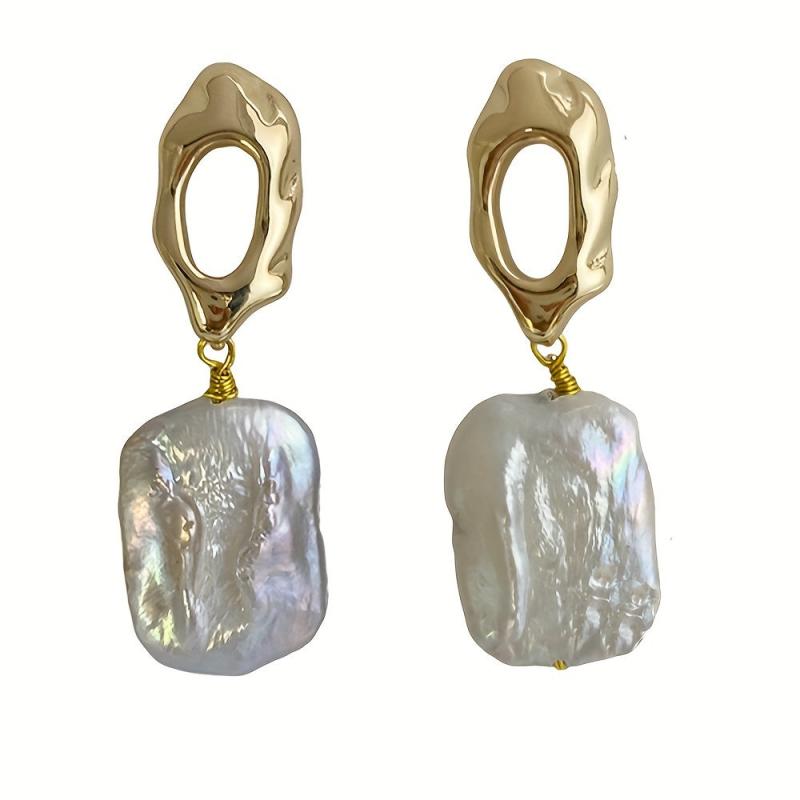 Elevate your style with these elegant freshwater pearl earrings. The woven metal design adds a touch of sophistication to any outfit. Perfect for gifting or special occasions.
