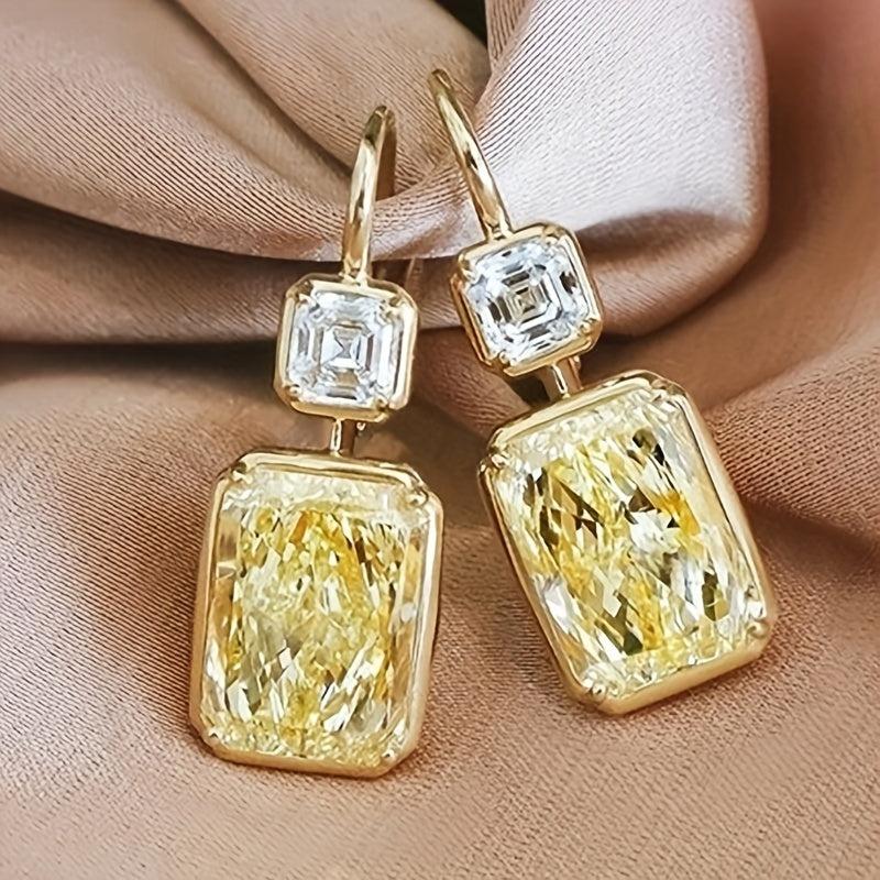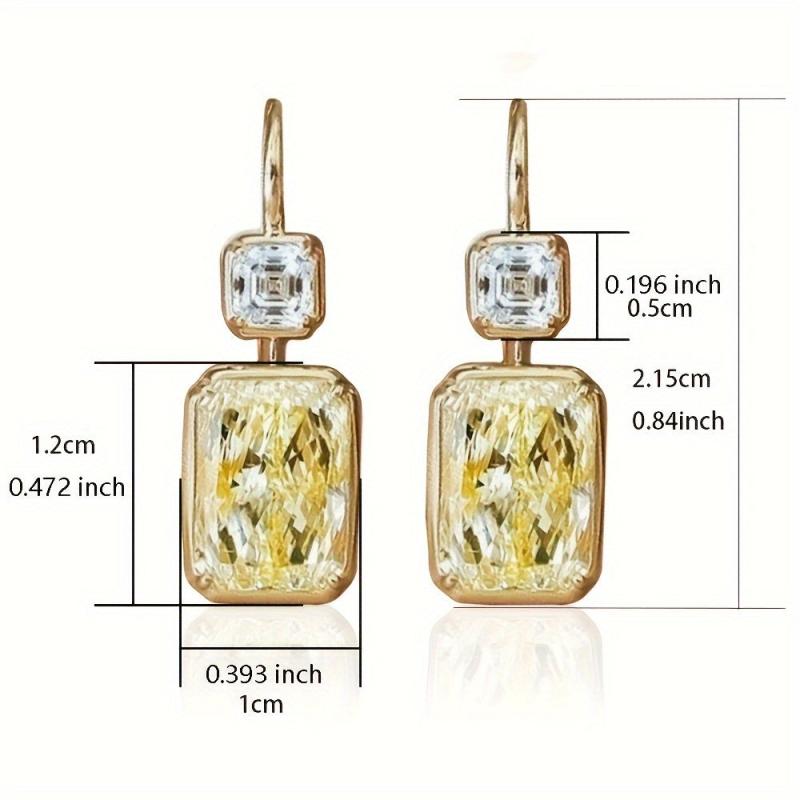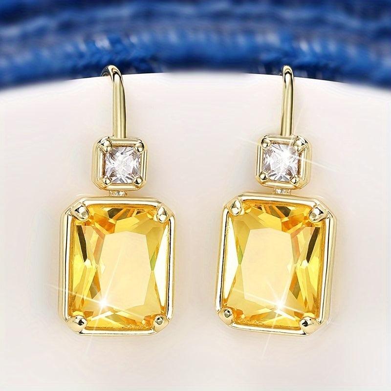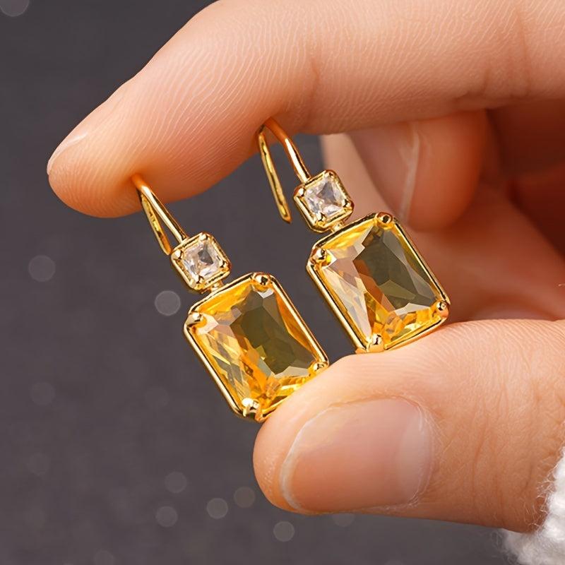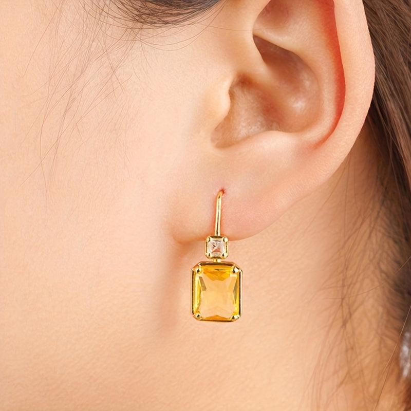 These elegant dangle earrings feature a 4-prong set yellow artificial jade gemstone. Perfect for daily wear, banquets, parties, or as a gift for women.
