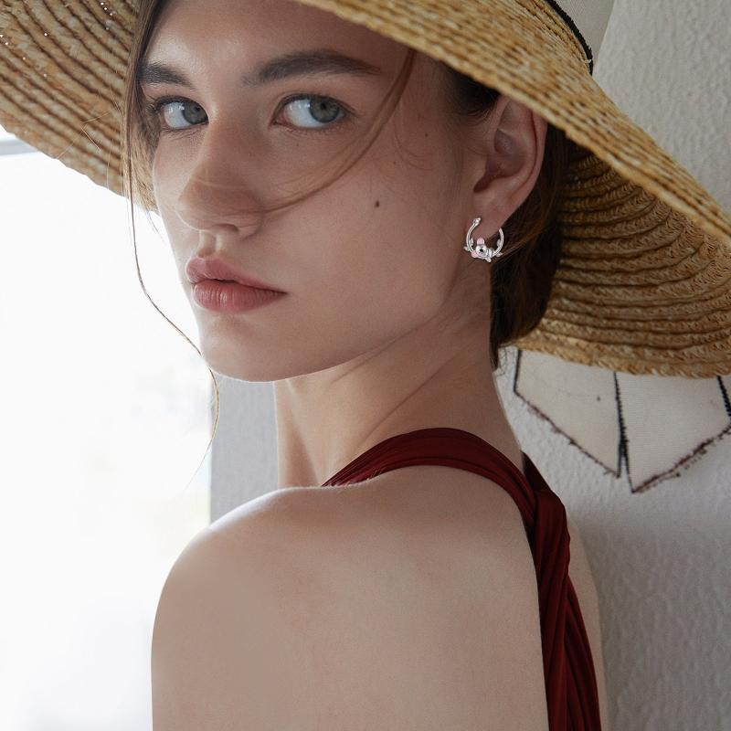 These hoop earrings are crafted from 925 sterling silver with a platinum plating and feature a synthetic stone in a vintage boho style, perfect for daily wear. They make a great gift for Thanksgiving.