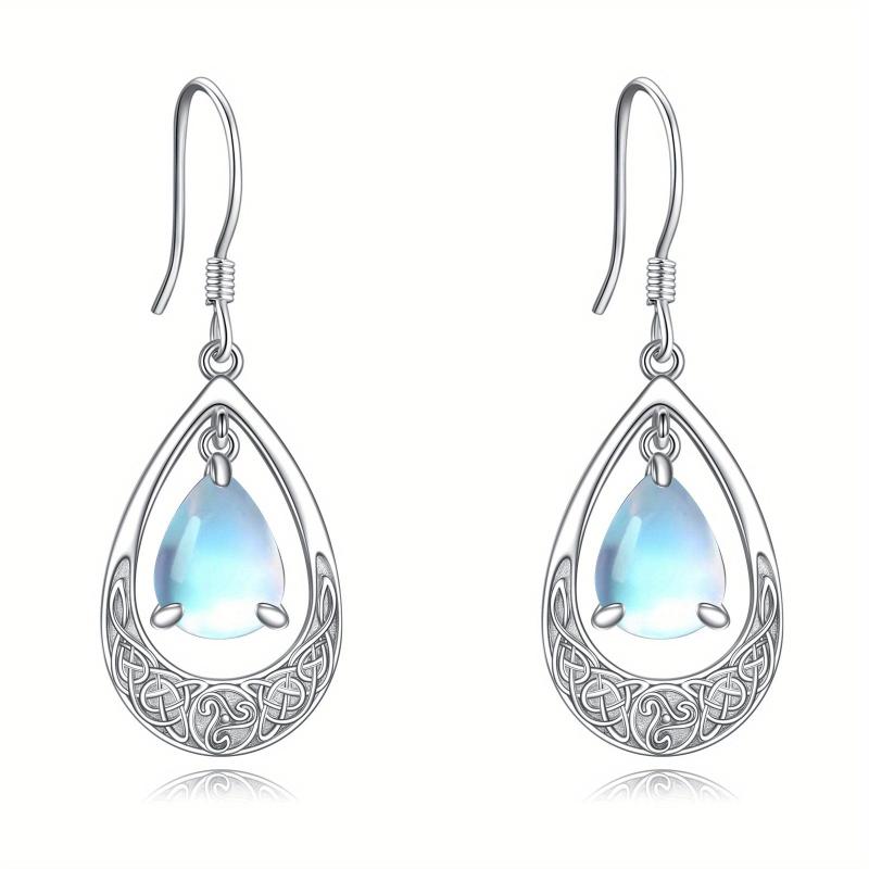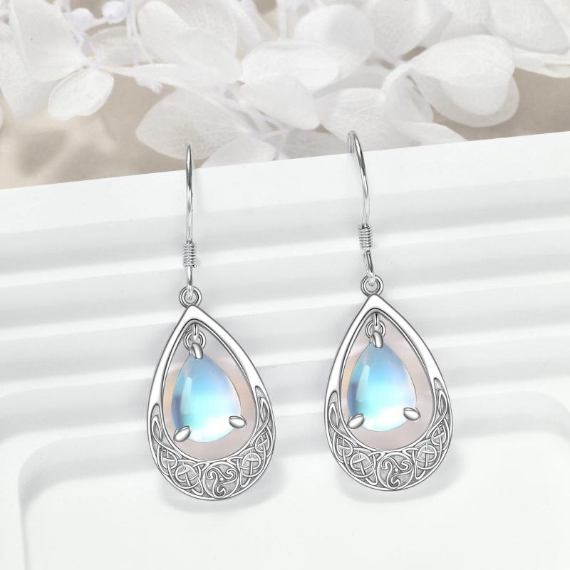 Beautiful teardrop moonstone dangle earrings featuring Celtic knot design. Made of 925 sterling silver, nickel-free. Perfect gift for women and versatile for all seasons.
