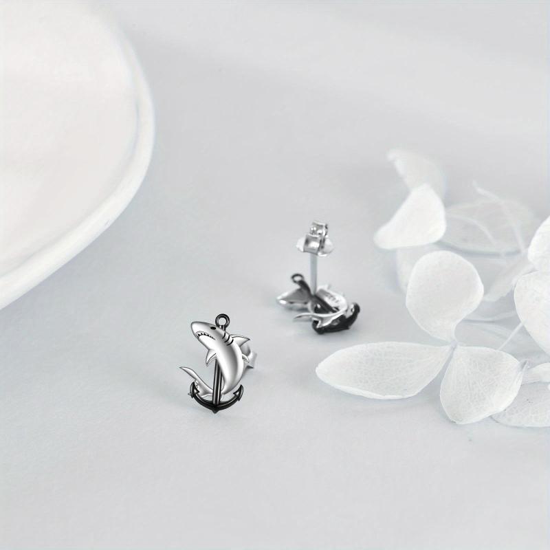 Adorn your ears with these stunning YFN Shark Anchor Stud Earrings made of sterling silver. Perfect for women and girls, these earrings are a stylish addition to any outfit.