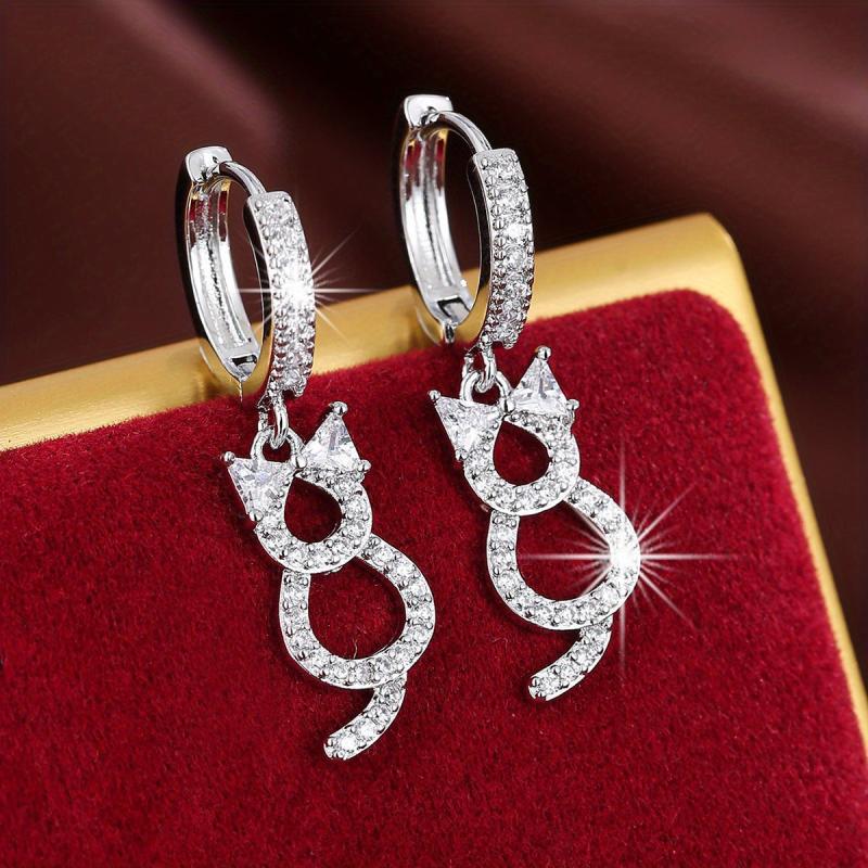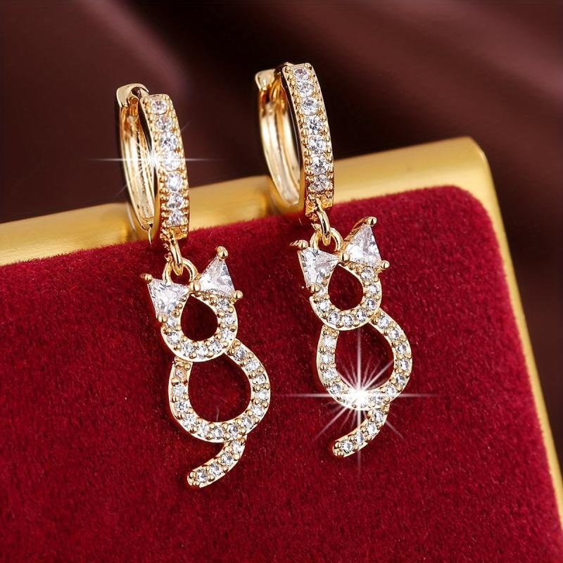 These elegant dangle earrings feature a hollow cat design with sparkling zircon decor. They are made of copper and plated with 18K gold, making them a perfect gift for any female.