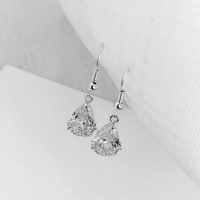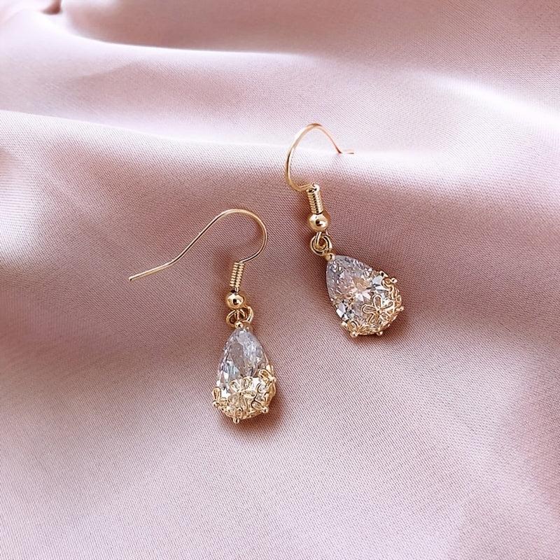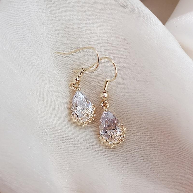 These lovely wire-wrapped zircon earrings feature a water drop shape design that adds a touch of sweetness to any outfit. Ideal gift for birthdays and special occasions.