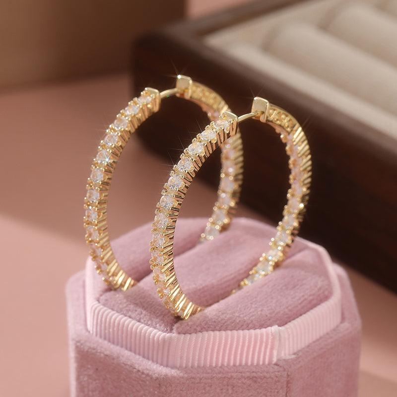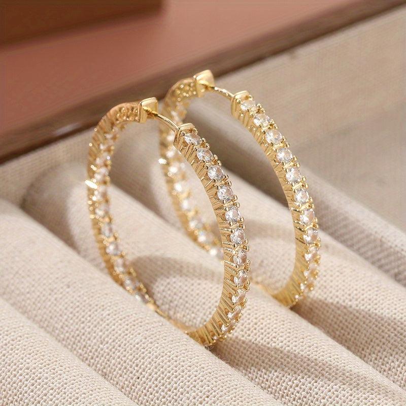 Shine bright with these stunning synthetic zirconia hoop earrings, perfect for weddings, banquets, Christmas, or everyday wear. Made with high-quality materials, these earrings add a touch of elegance to any outfit.