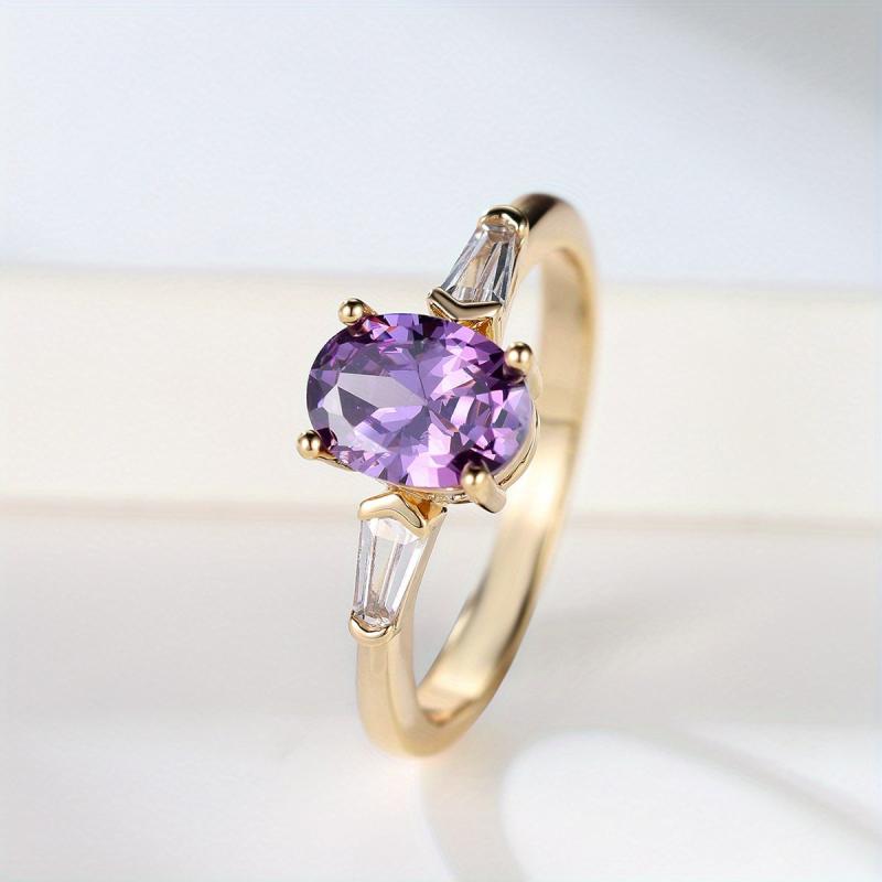 This stunning promise ring features inlaid purple zirconia, making it a perfect engagement or wedding ring. It is also an excellent choice for evening parties and can be a great gift for your lover.