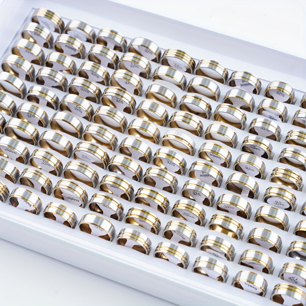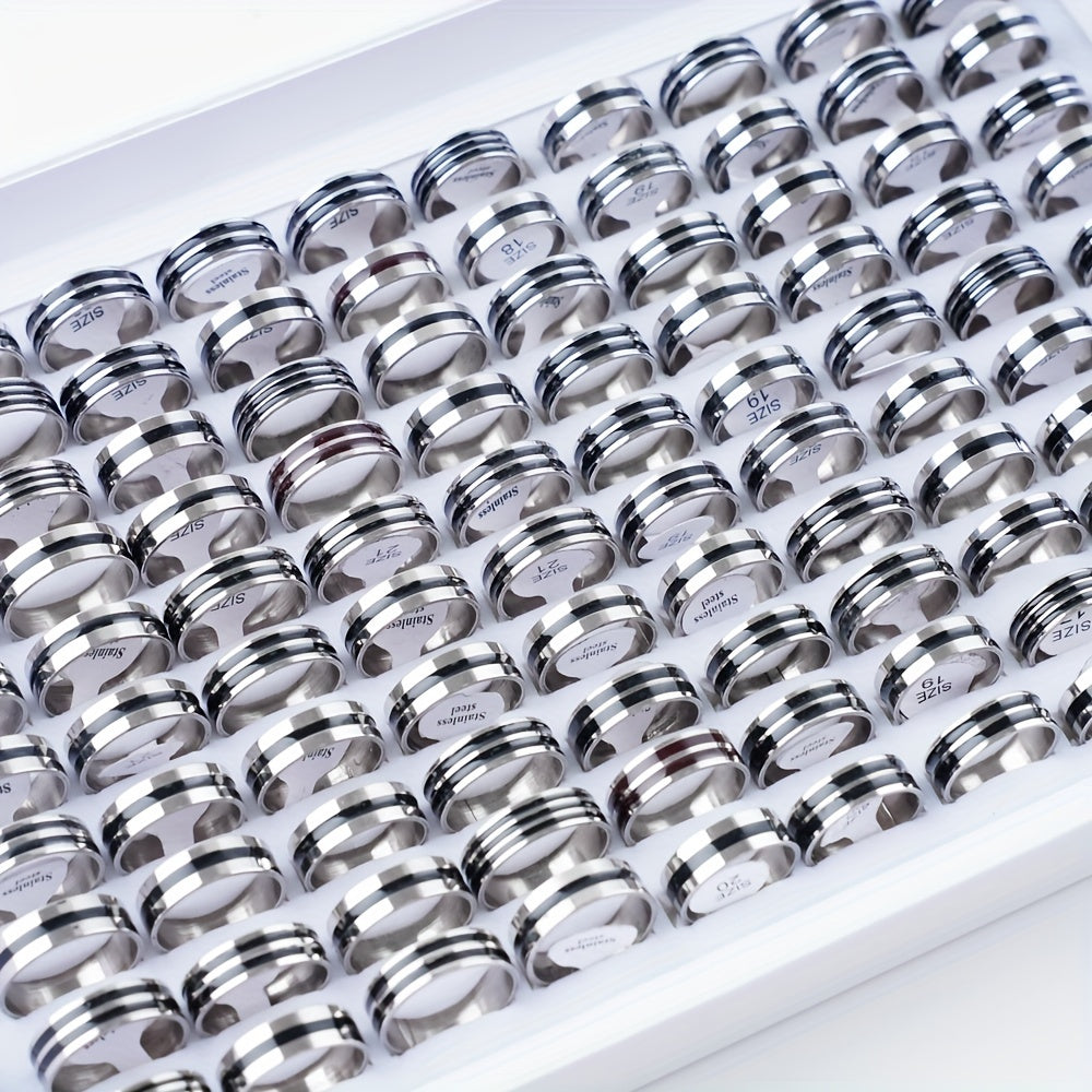 This set includes 20 stainless steel rings in various colors with striped design. Perfect for parties, men, and women.