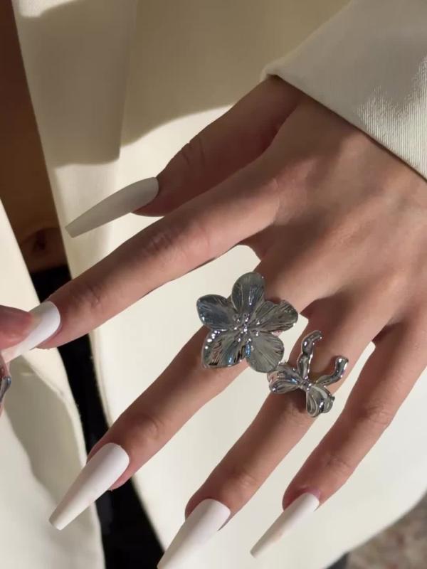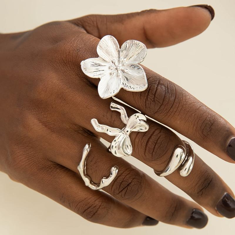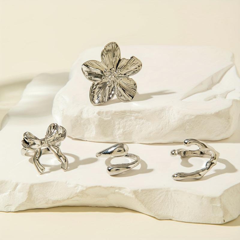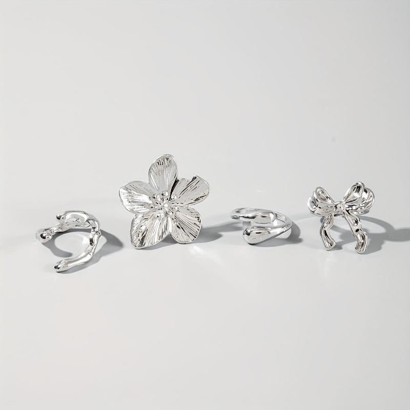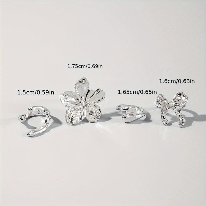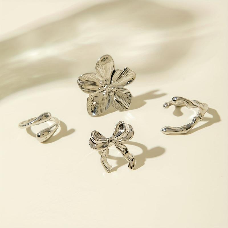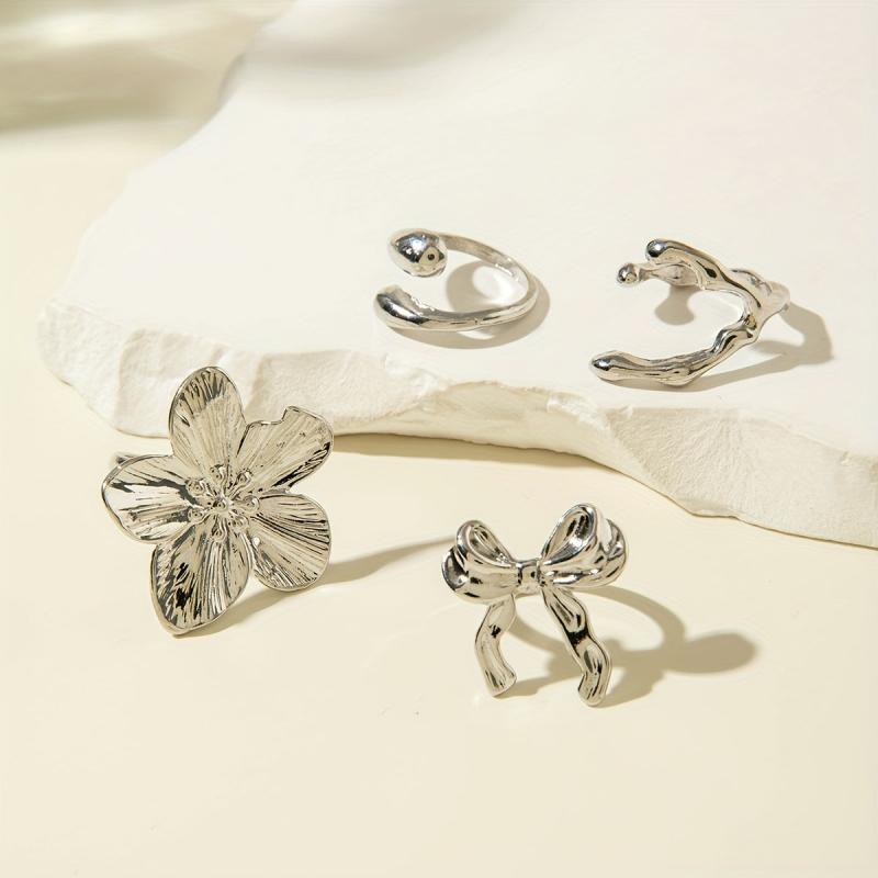 Elevate your style with this ring set featuring geometric irregular designs and a floral bowknot. Perfect for parties and banquets, this set makes a great gift for women. Ideal for casual wear and special occasions.