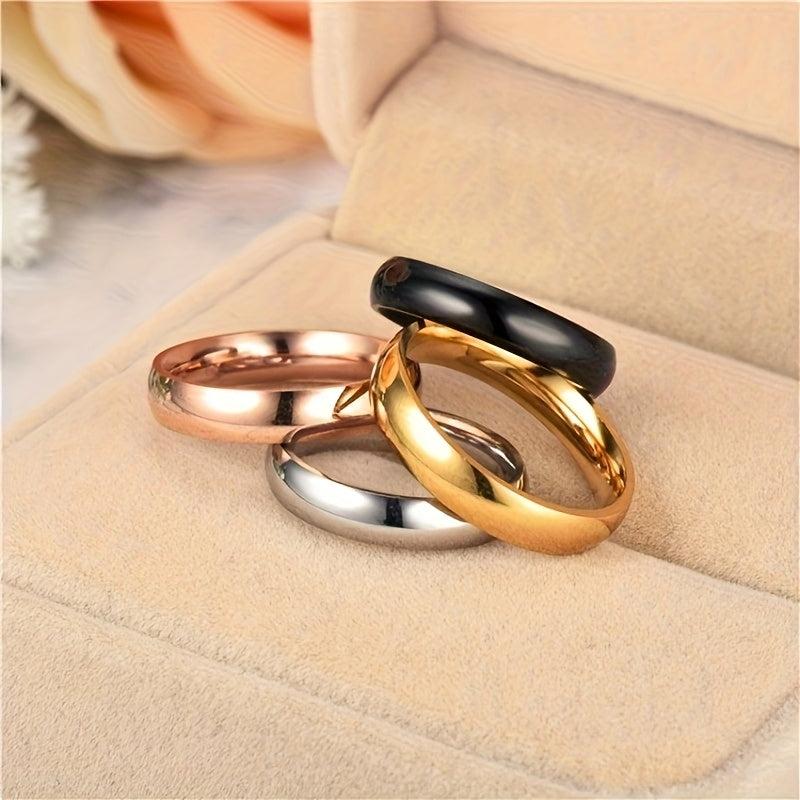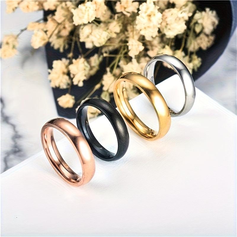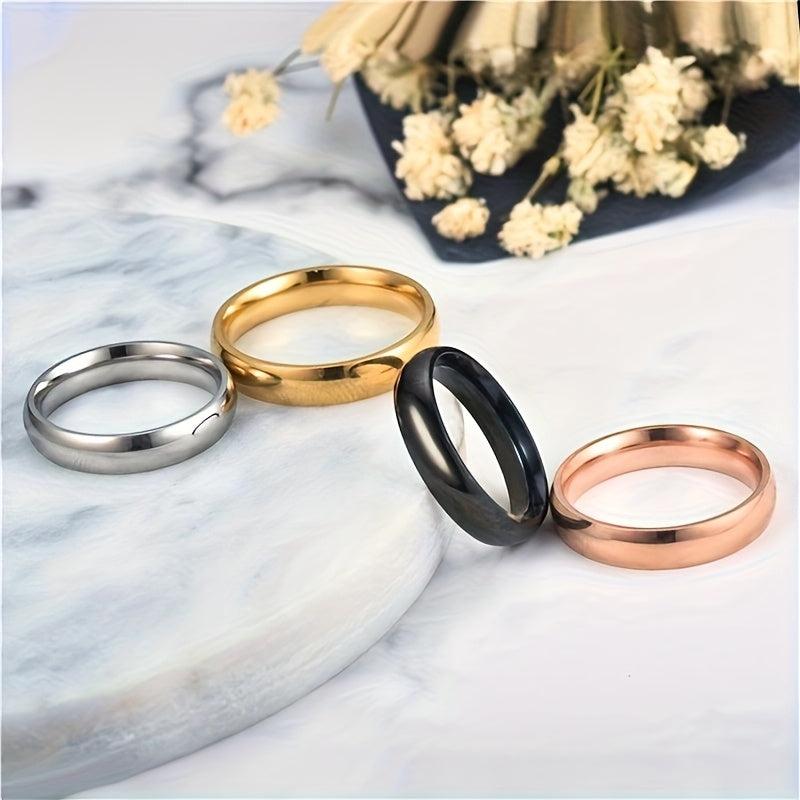 Elevate your style with this 4-piece set of minimalist stainless steel rings designed for women. These versatile rings add a touch of personality to any outfit.
