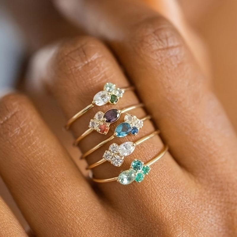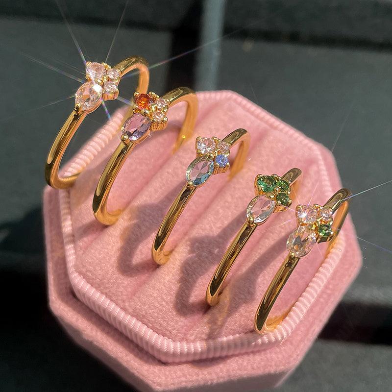Elegant set of 5 rings featuring inlaid princess cut synthesis zirconia, perfect for weddings, proposals, and parties. Makes a great gift for women.