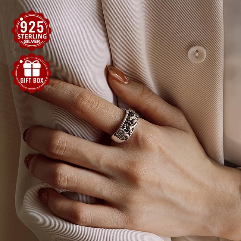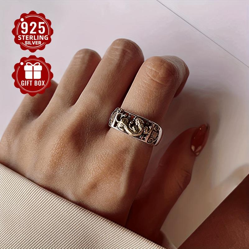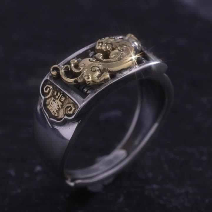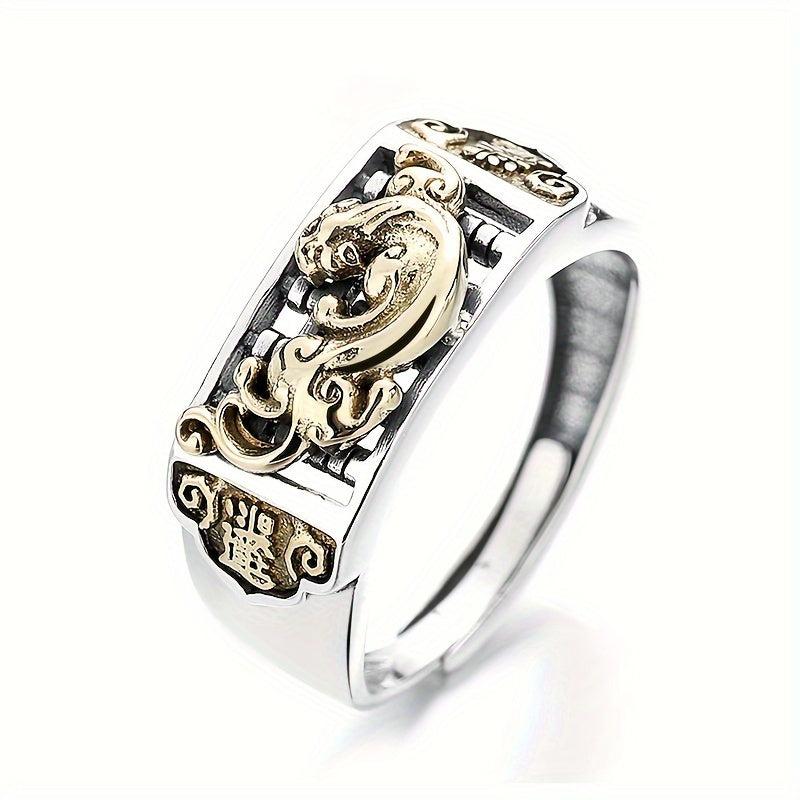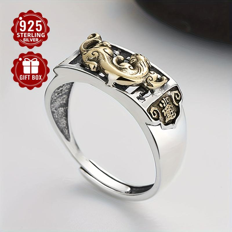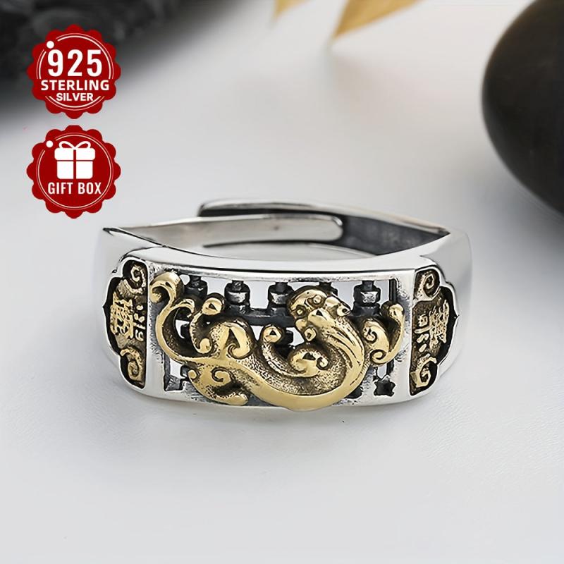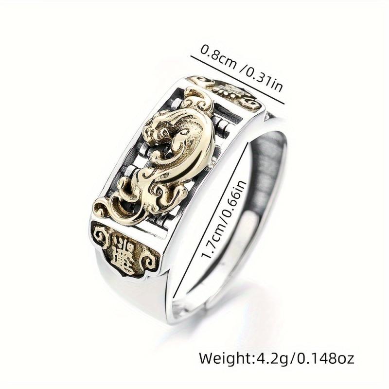 This retro neutral style ring features an abacus design with aging pixiu embellishment. Made of 925 pure silver, suitable for party or casual wear.