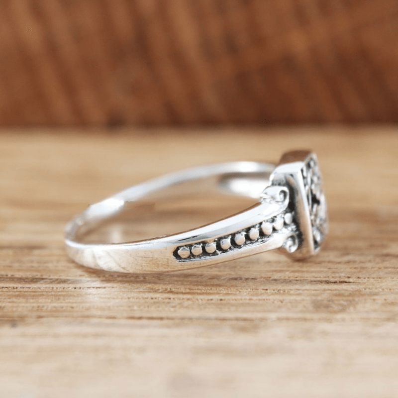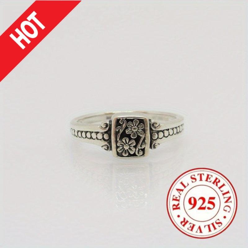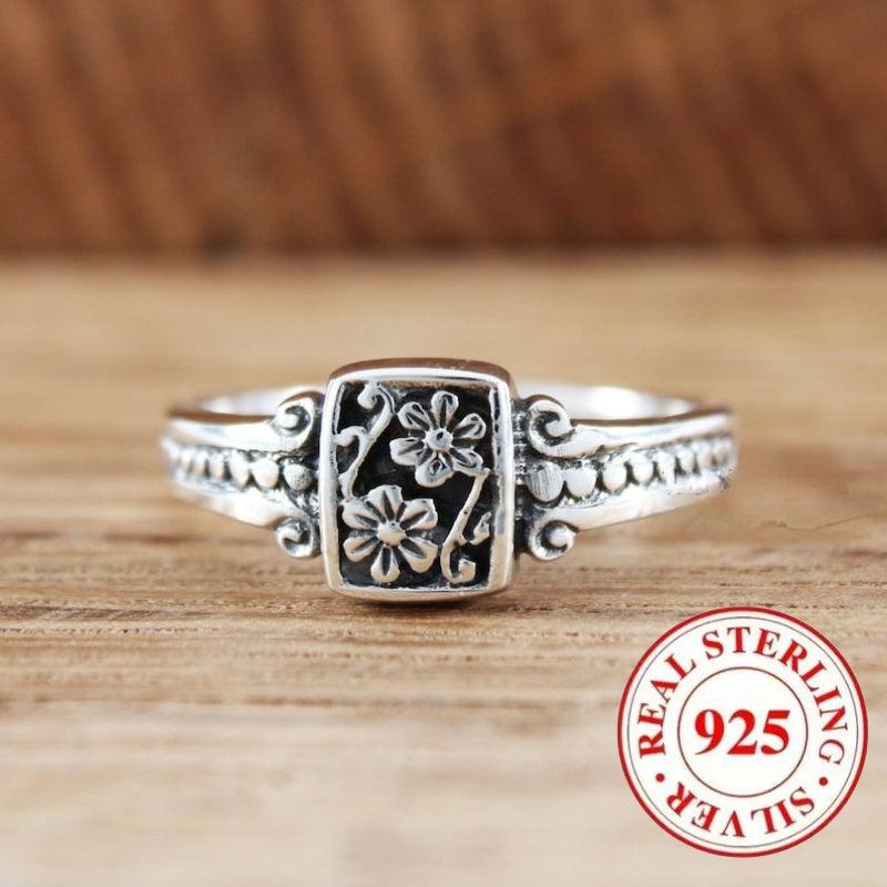This stunning vintage women's ring is made of 925 pure sterling silver. The intricate flower design makes it a perfect choice for a promise or holiday gift.