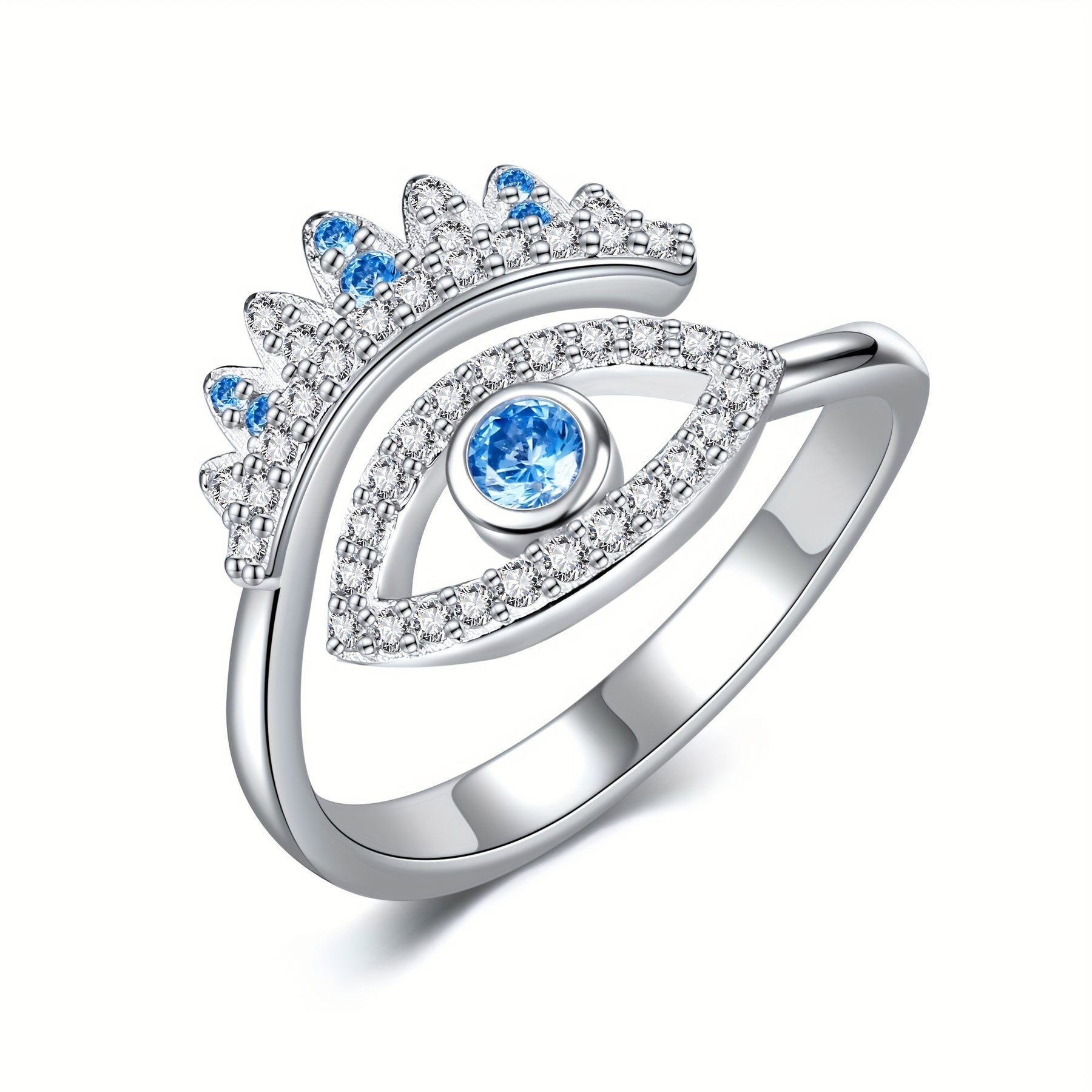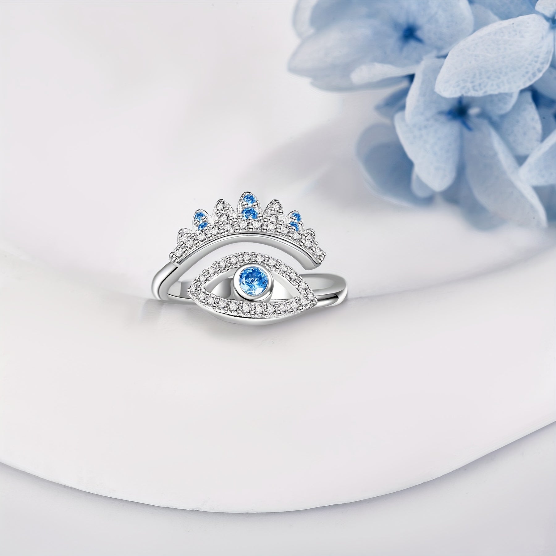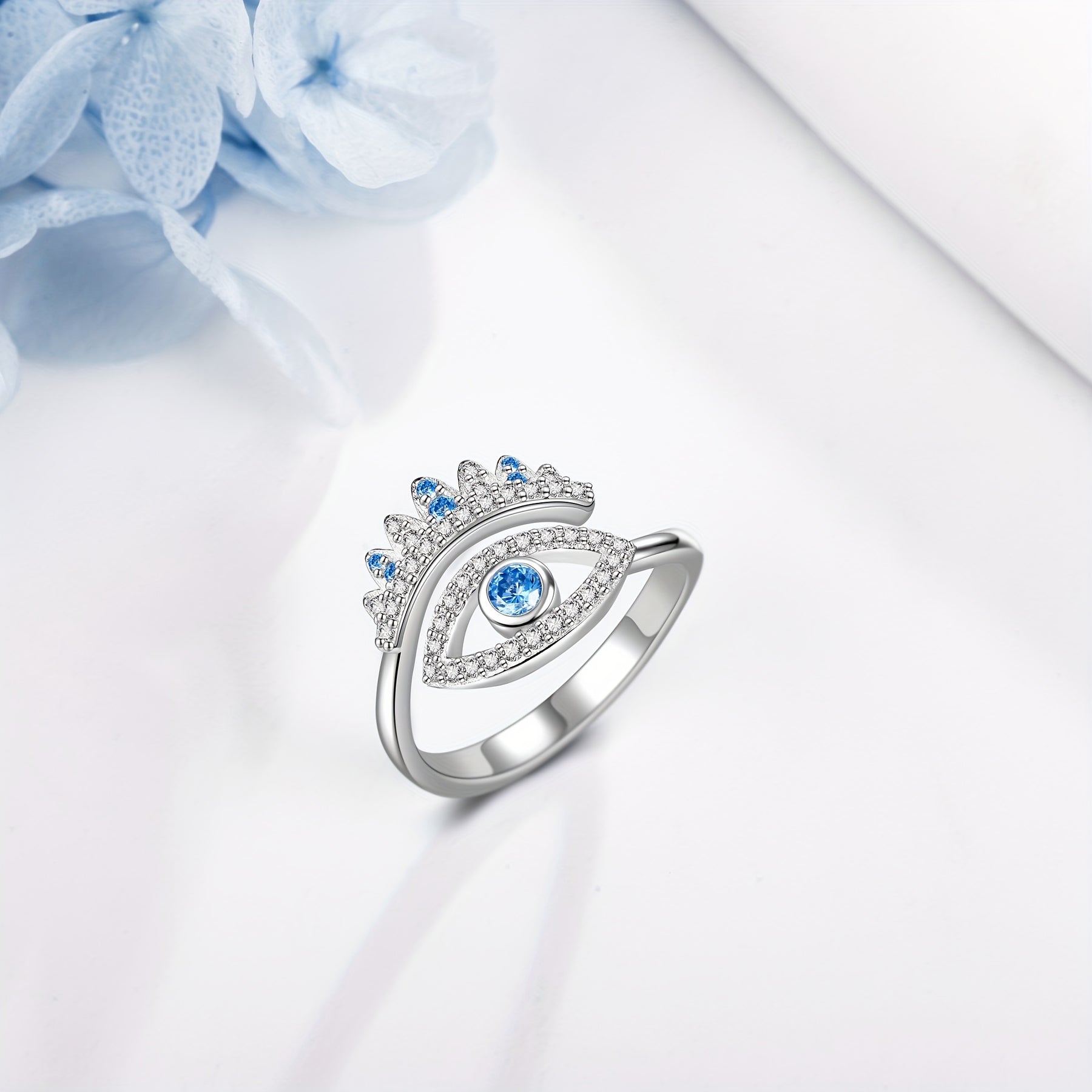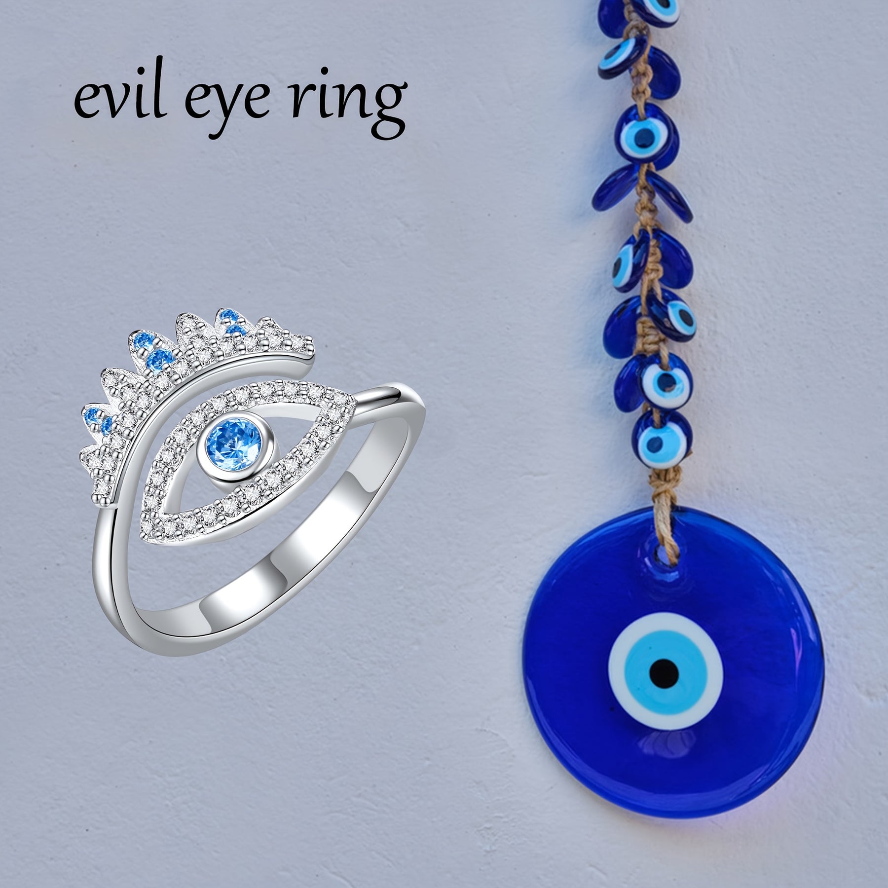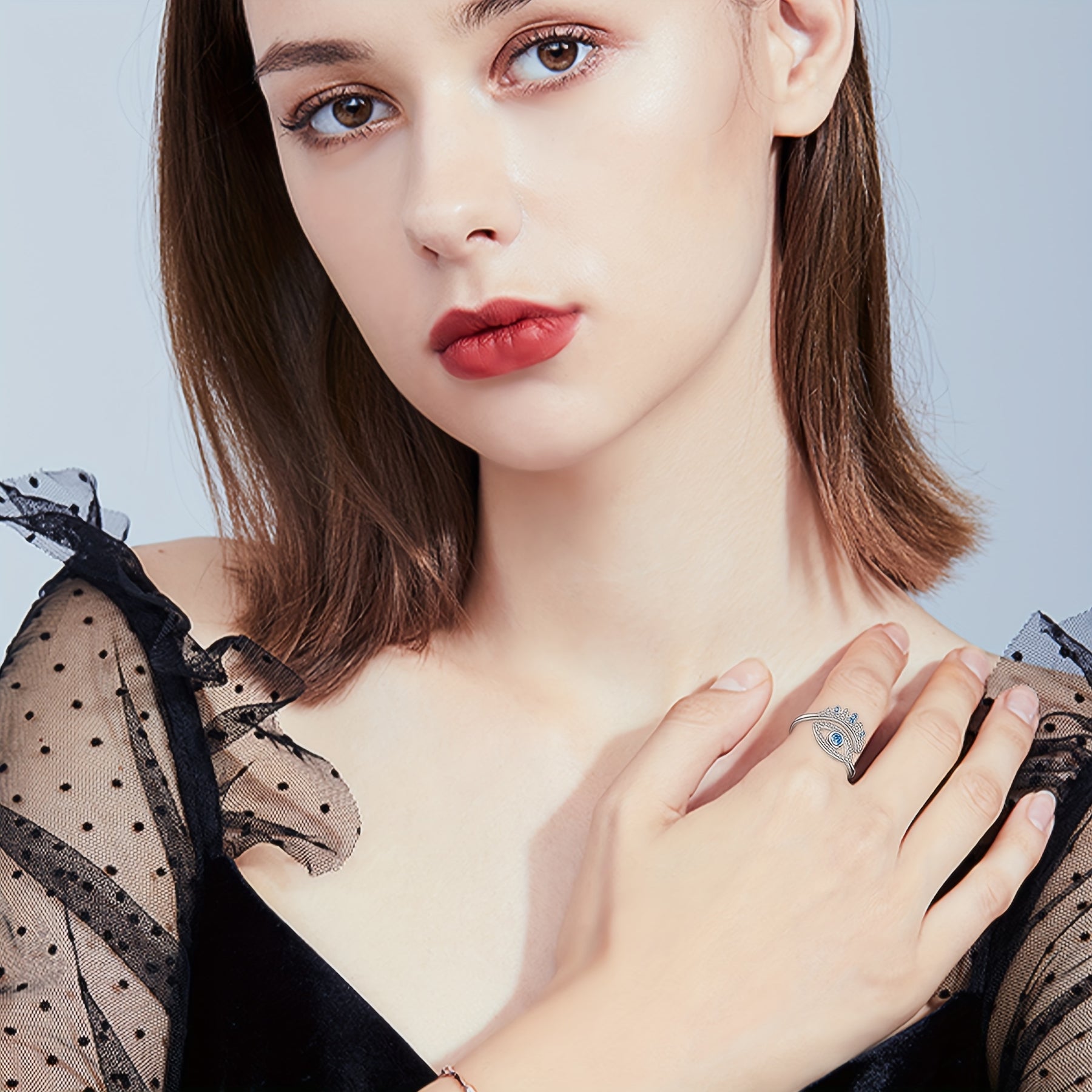 This evil eye ring is made from 925 sterling silver, featuring a classic amulet design for protection. It is adjustable to fit different finger sizes.