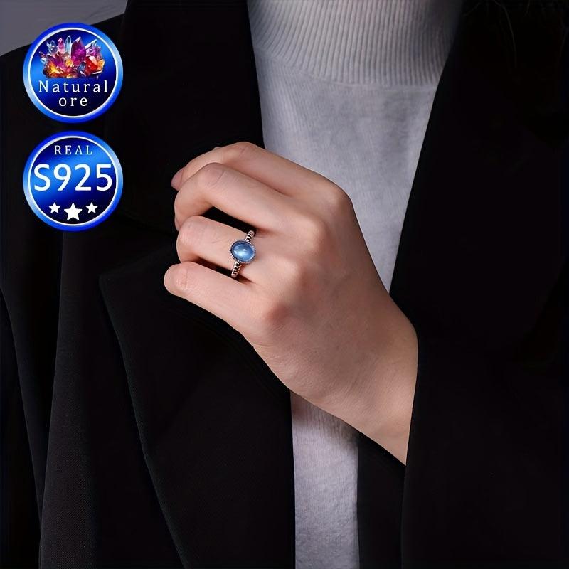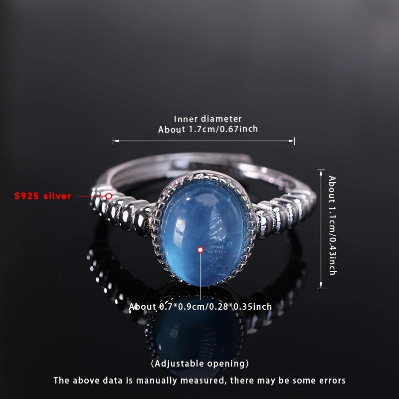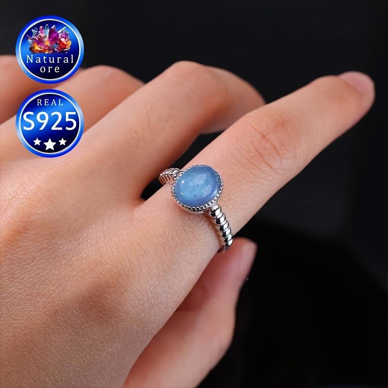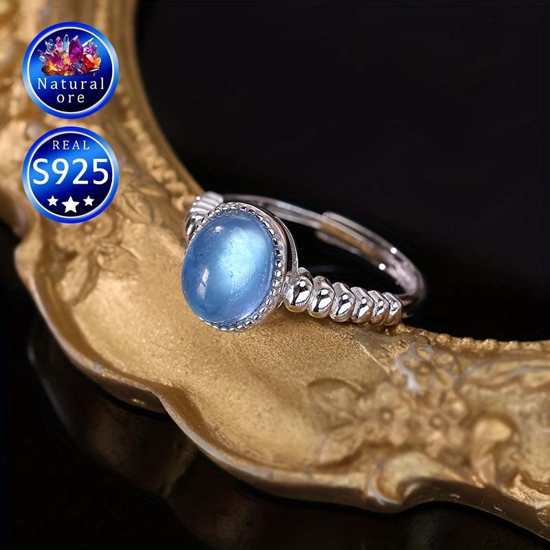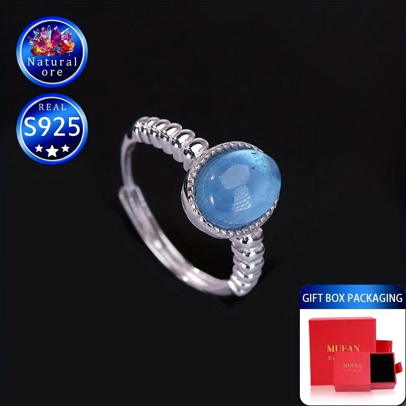 925 Silver Aquamarine Mosaic Ring Opening Natural Stone Pat. March Birth