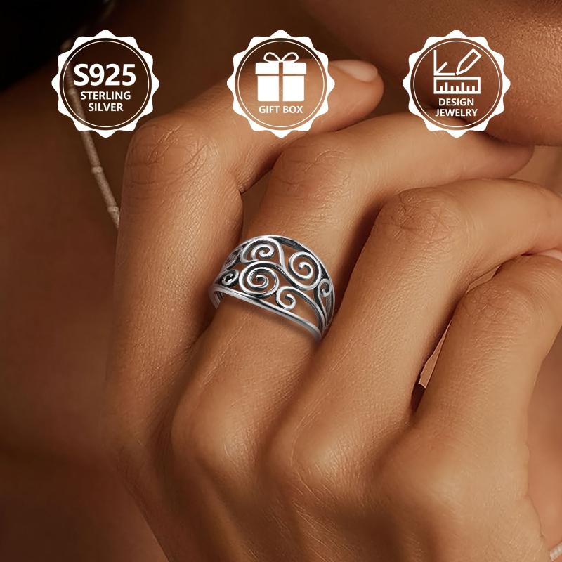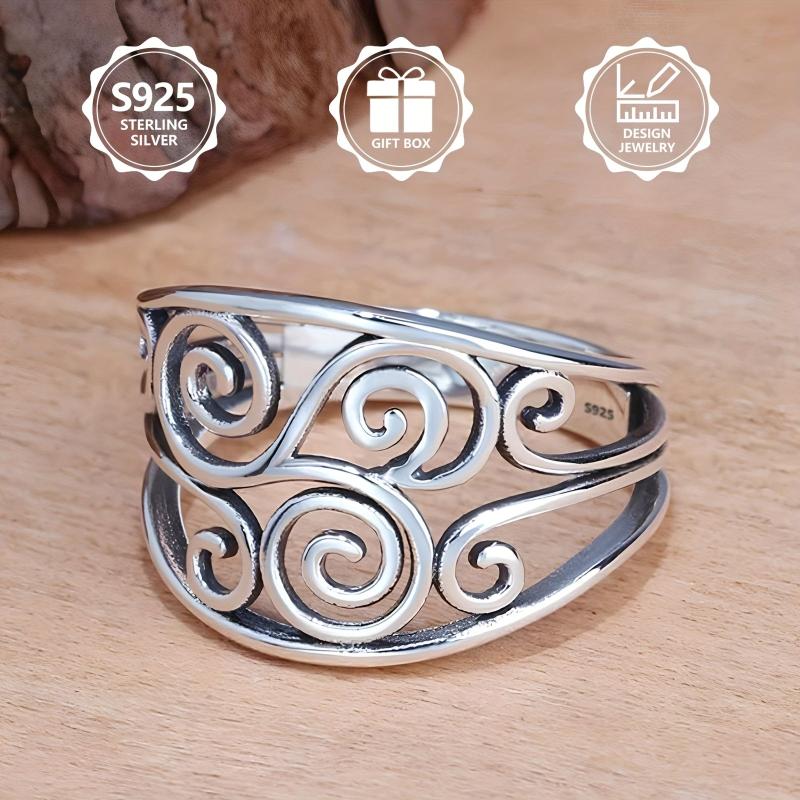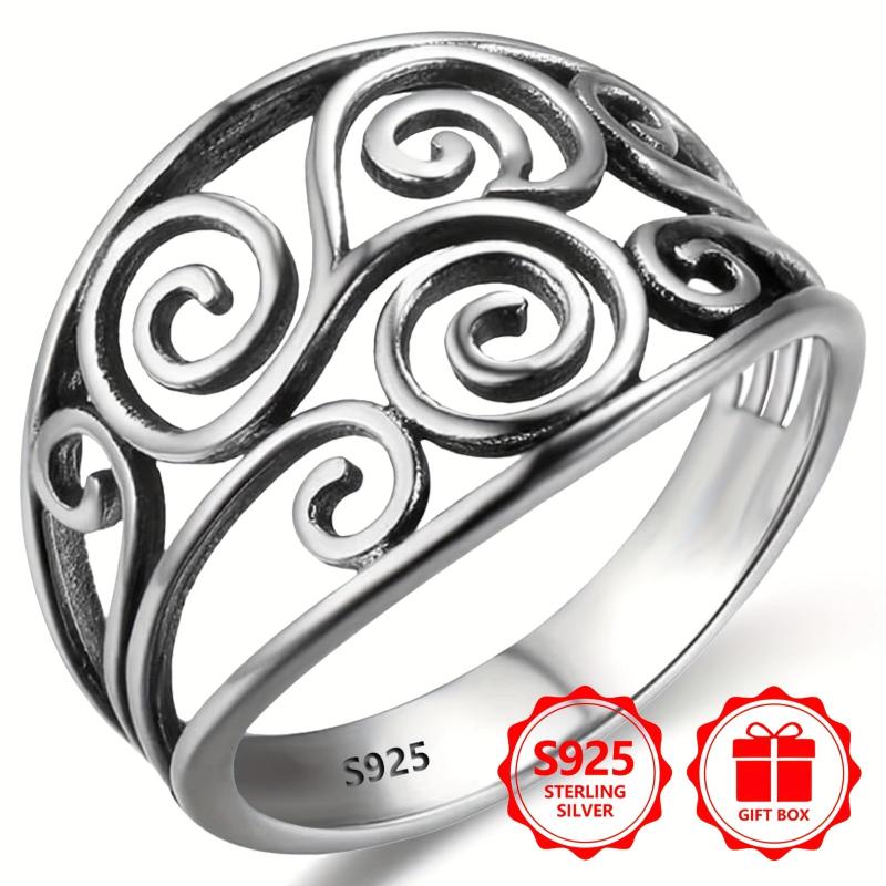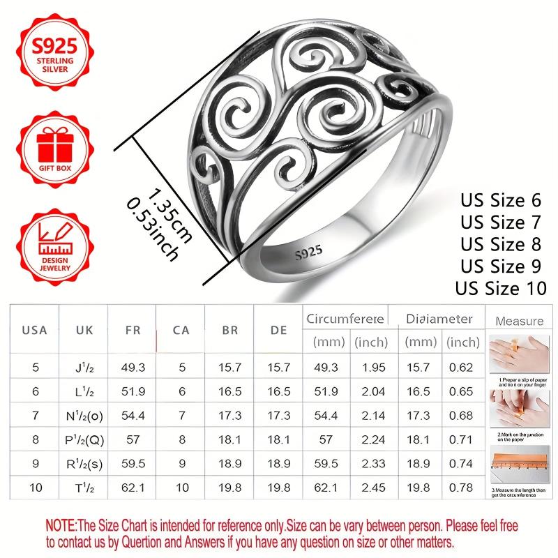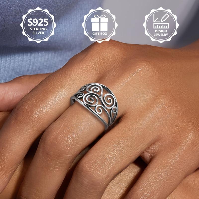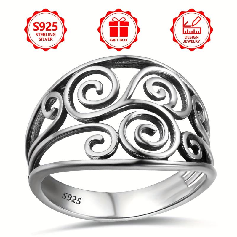 This bohemian style ring is made of 925 sterling silver with a hollow flower design. It is hypoallergenic and nickel-free, making it perfect for daily wear, parties, holidays, or as an Independence Day gift.
