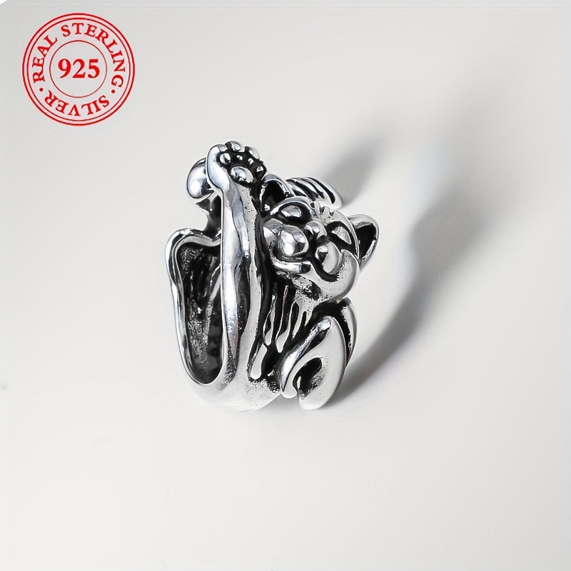 This adorable cat ring is made of 925 silver, weighing 7g. It's perfect for daily wear or as a thoughtful gift for cat lovers.