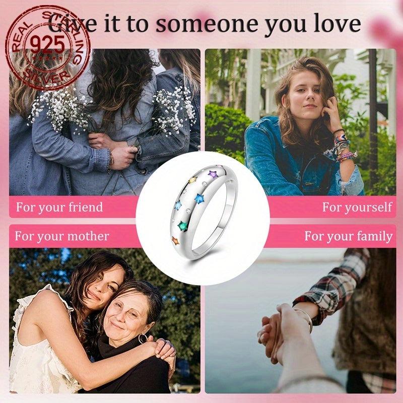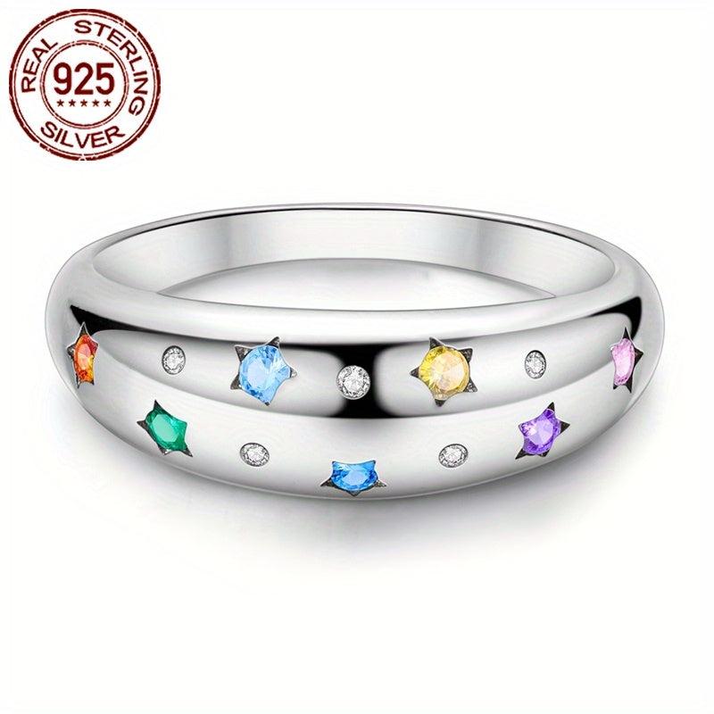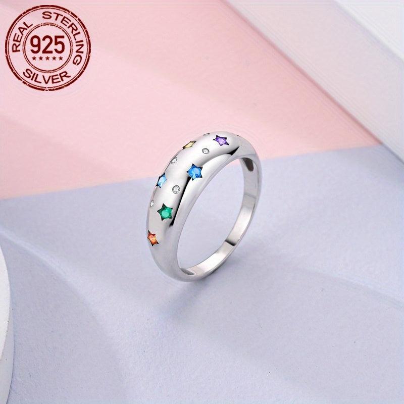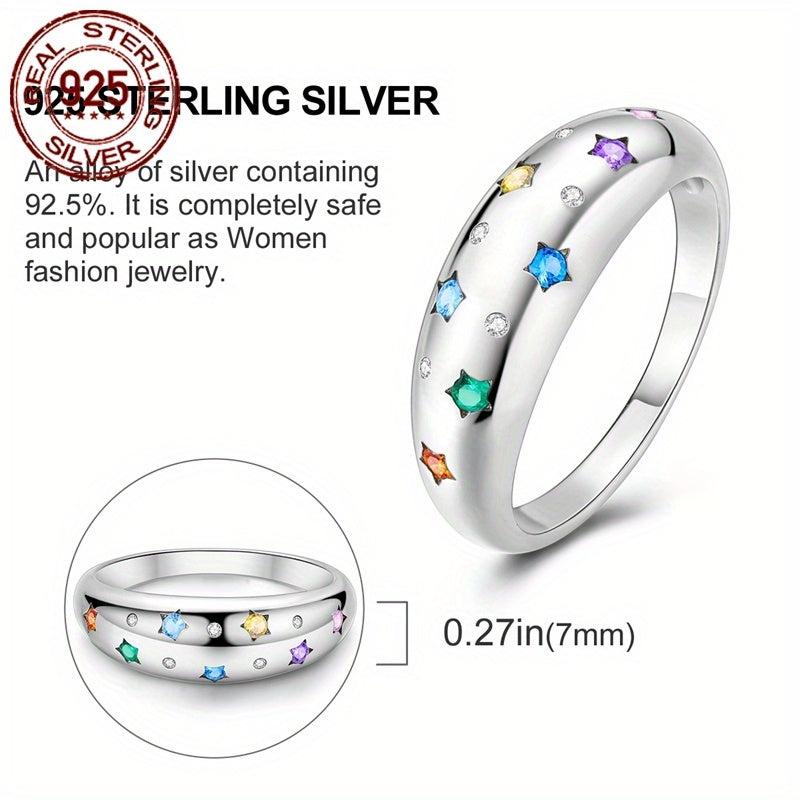 This stunning 925 sterling silver ring features a colorful starry design with sparkling cubic zirconia stones. It is perfect for women's wedding, party, birthday, or Christmas.
