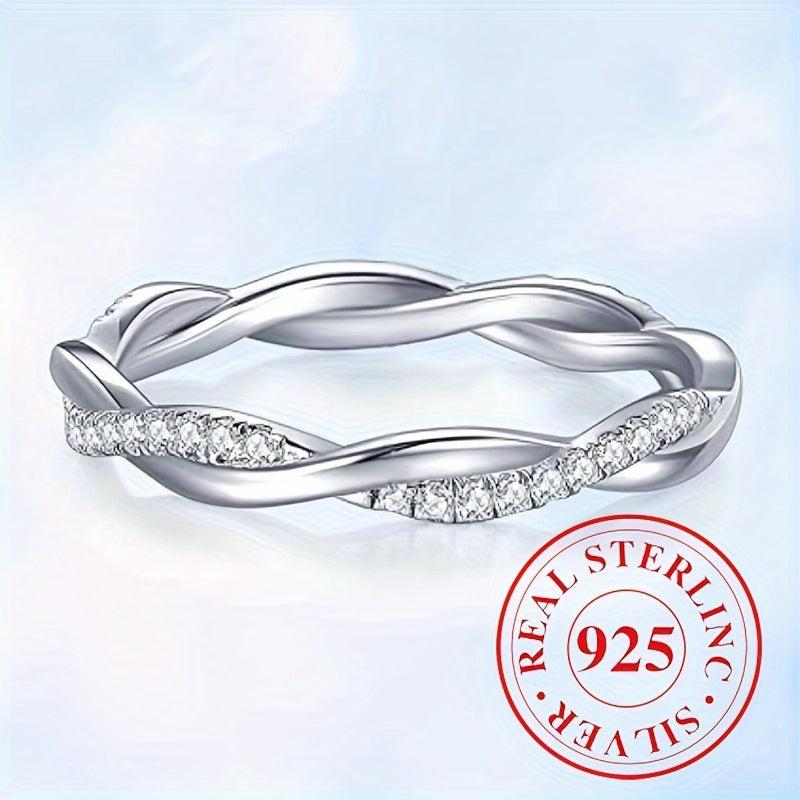 Elegant 925 pure silver ring features a classic cross design with shimmering zirconia stones. Ideal for engagement and marriage, this high-end jewelry piece is perfect for brides.