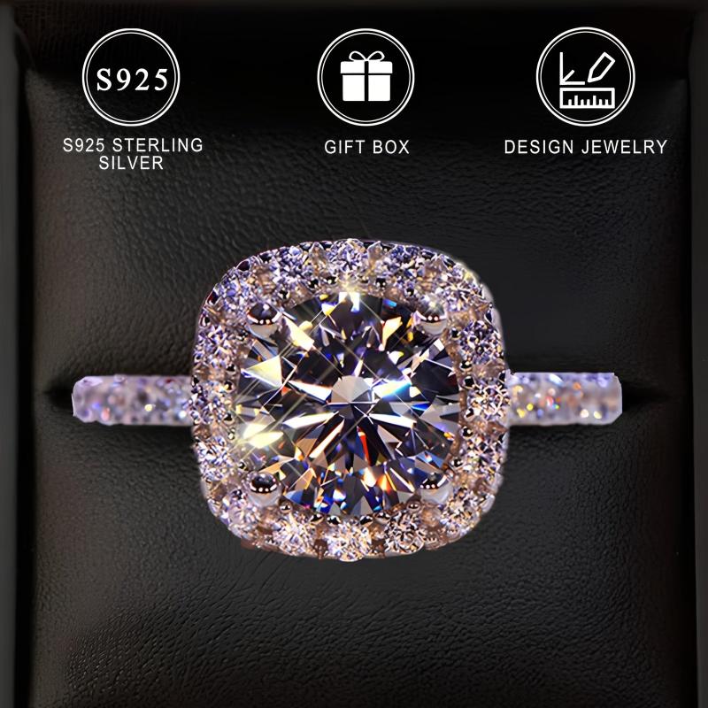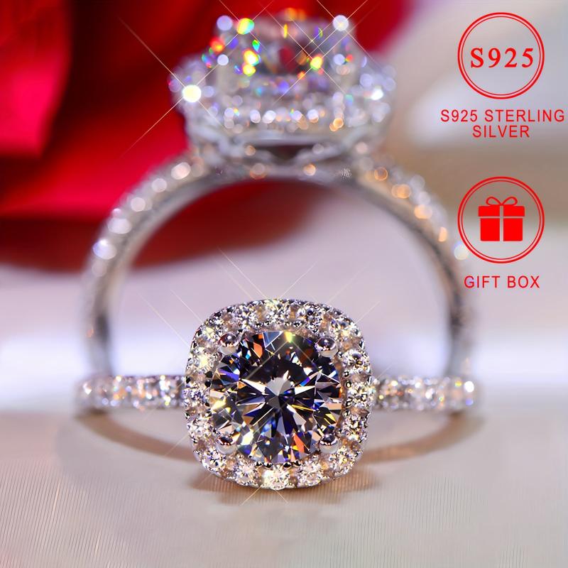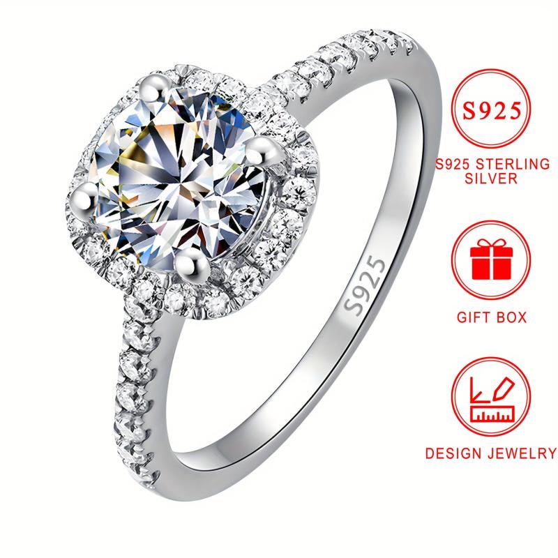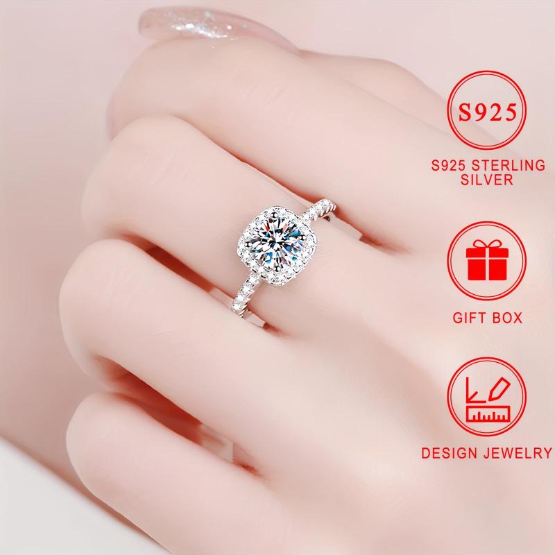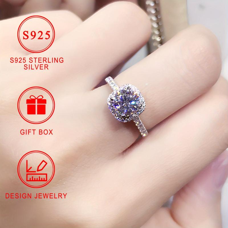 This stunning 925 sterling silver engagement ring features a synthetic round cubic zirconia stone in a four-prong setting. Ideal for daily wear and gifting.