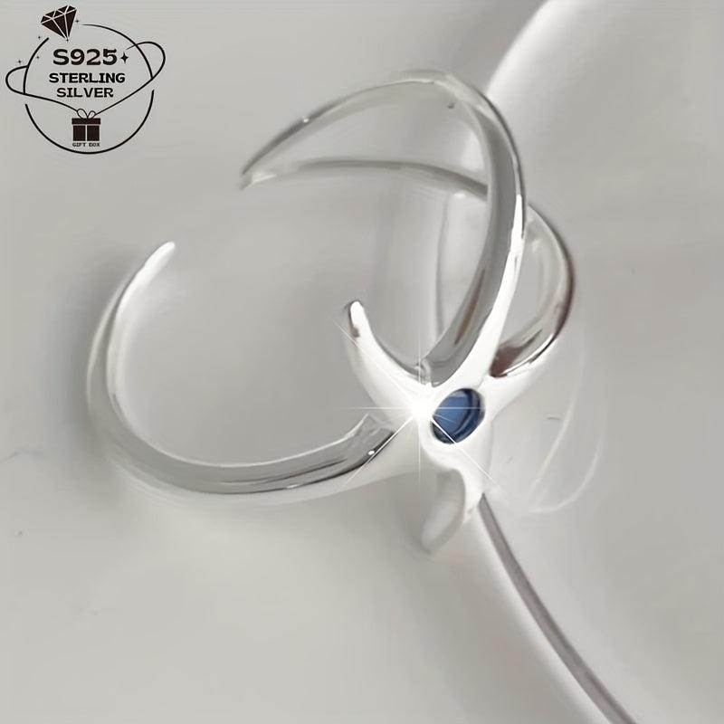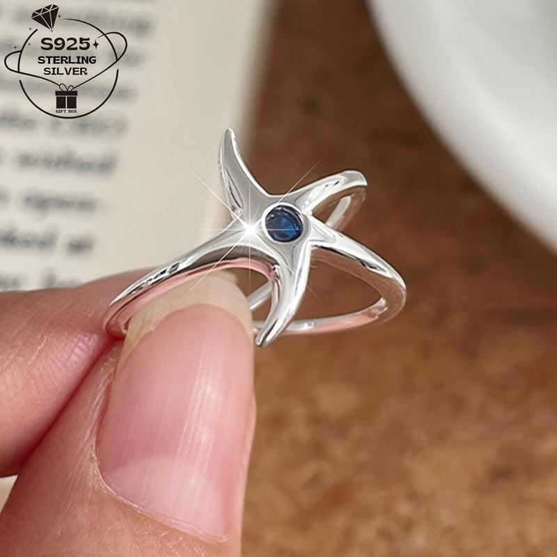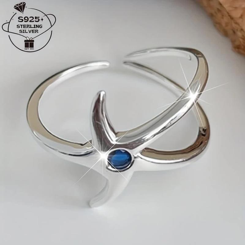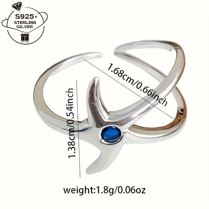 This stunning 925 silver double layer starfish ring is inlaid with synthetic zirconia for added sparkle. The ring is adjustable to fit any finger size.