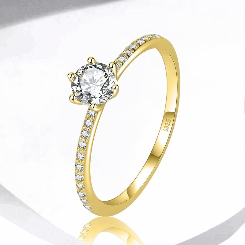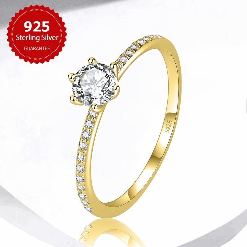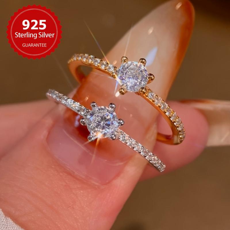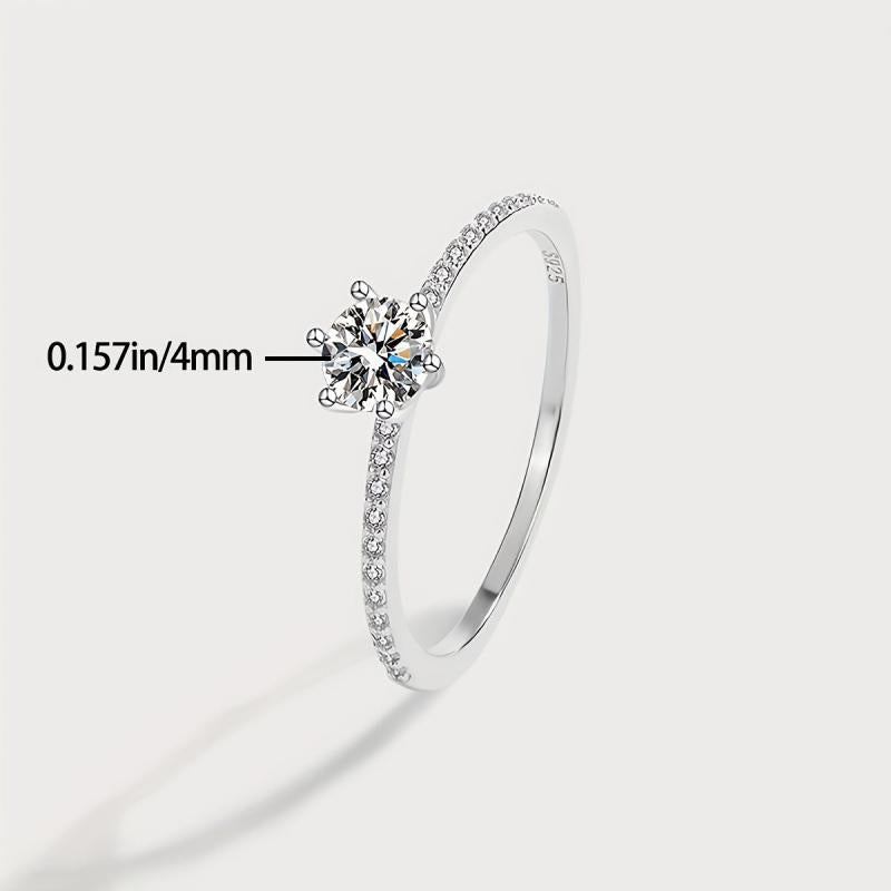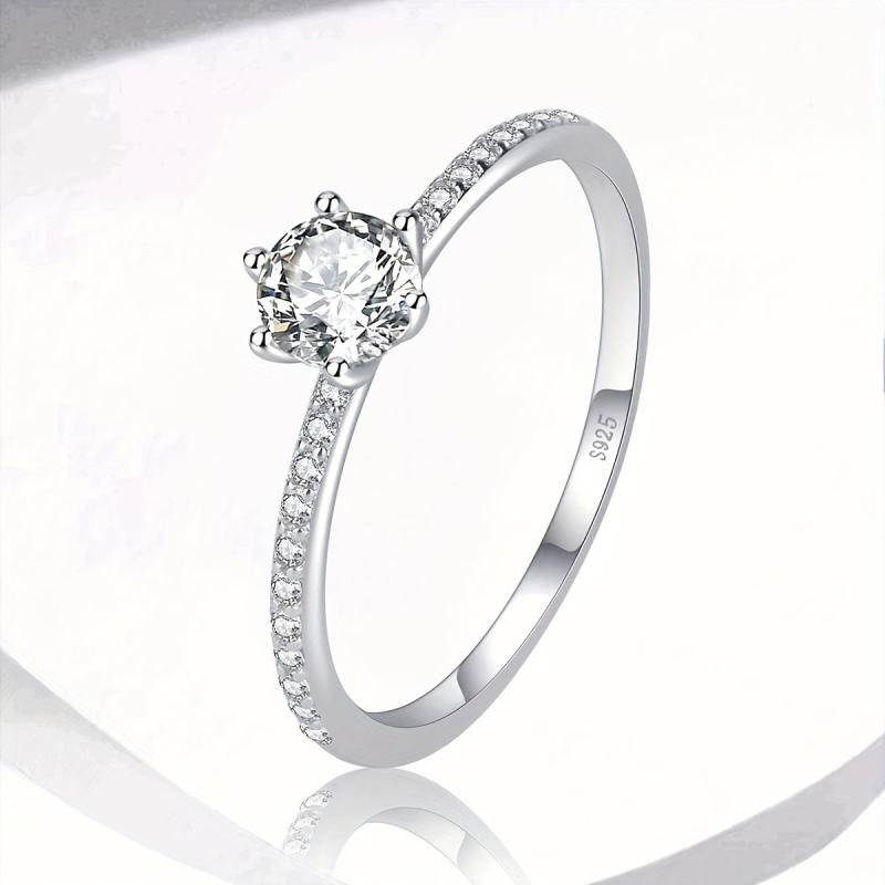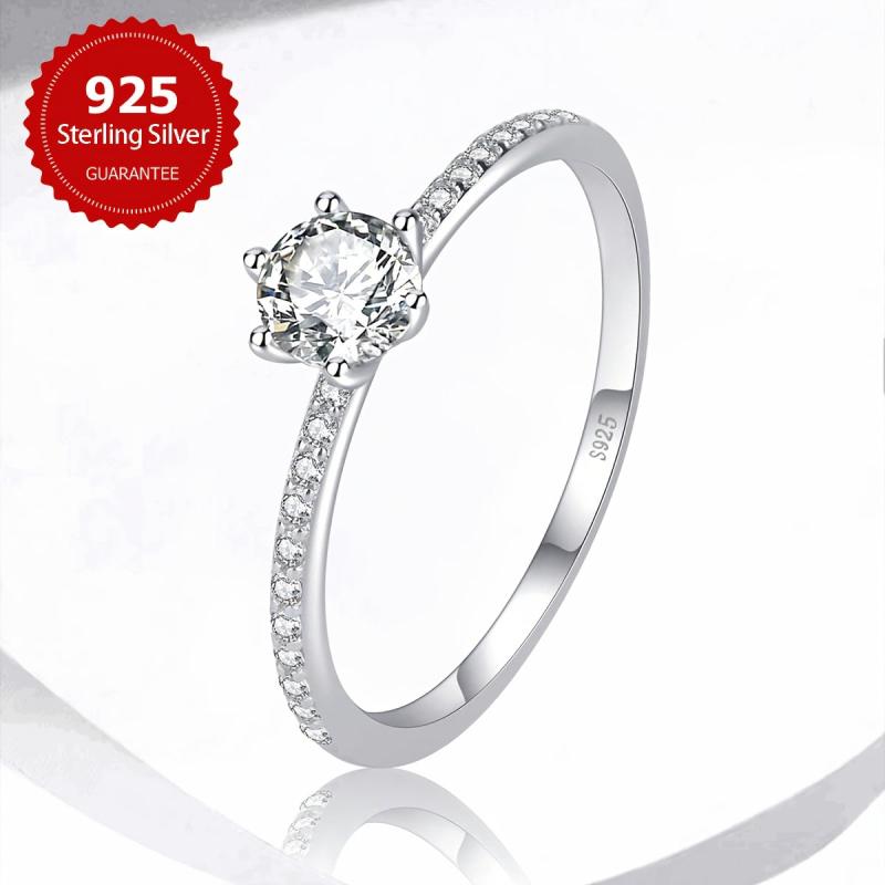Stunning 925 sterling silver engagement ring with round cubic zirconia six prong setting. Perfect for daily wear and special occasions.