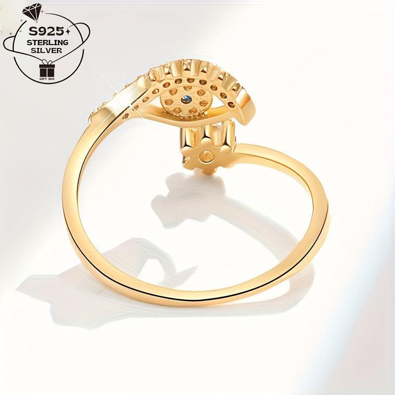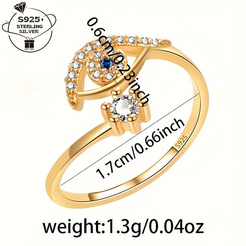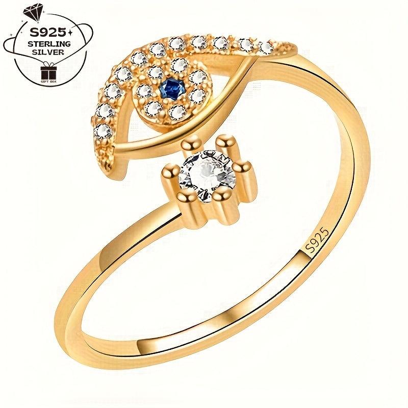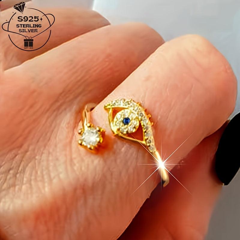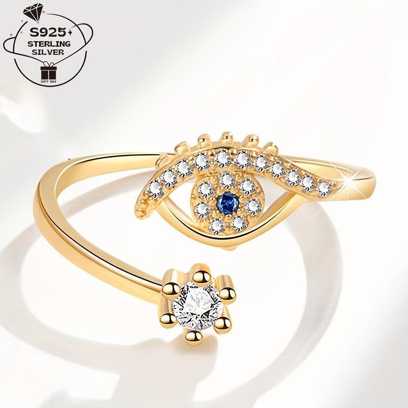 This 925 sterling silver evil eye ring is adjustable and designed for women to provide mystical protection. It is embellished with cubic zirconia, making it suitable for everyday wear and parties.
