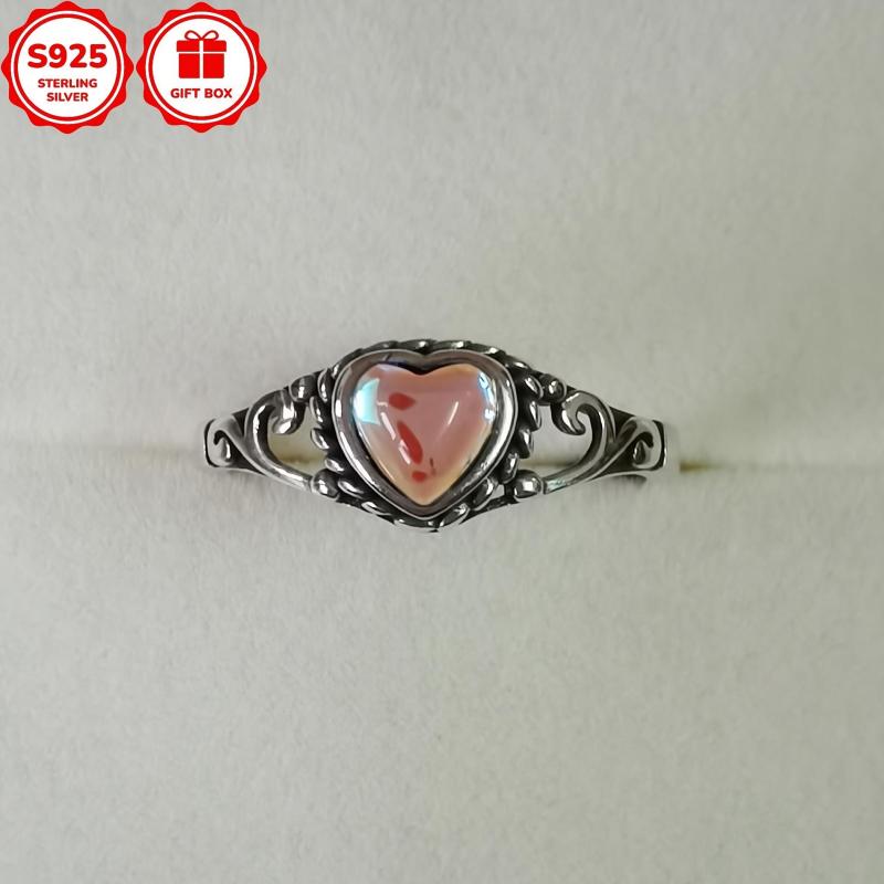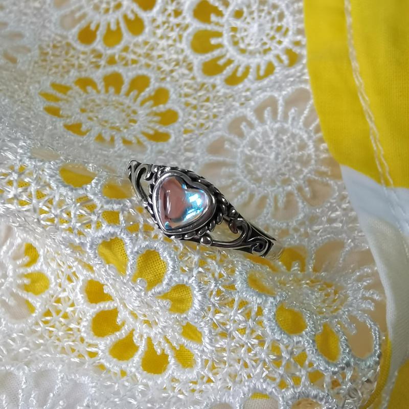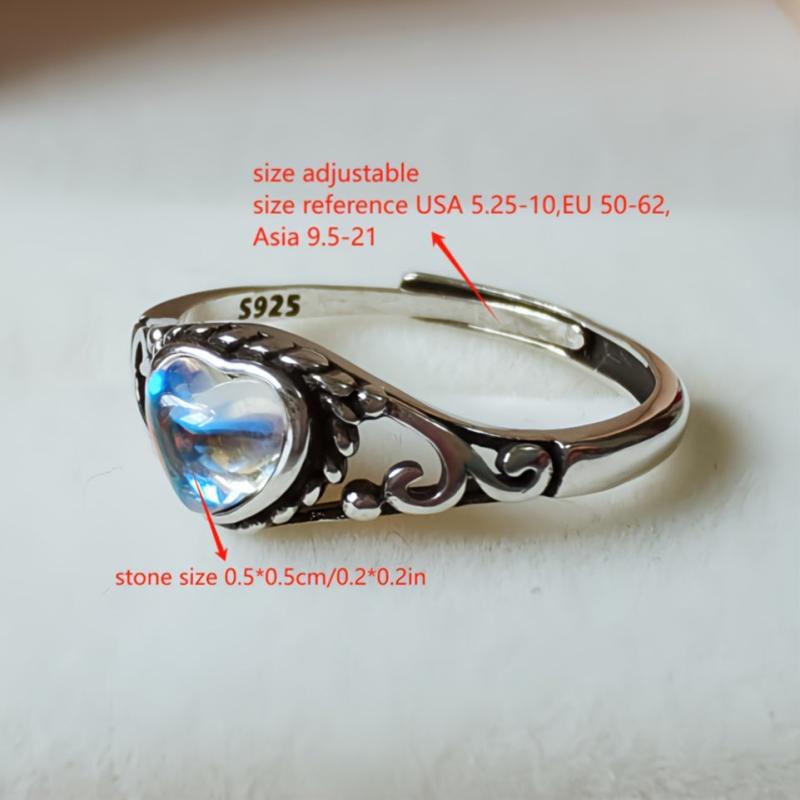 This 925 sterling silver ring features a heart-shaped moonstone in a vintage design. Perfect for everyday wear or special occasions, this ring makes a great gift for mothers, wives, or friends.