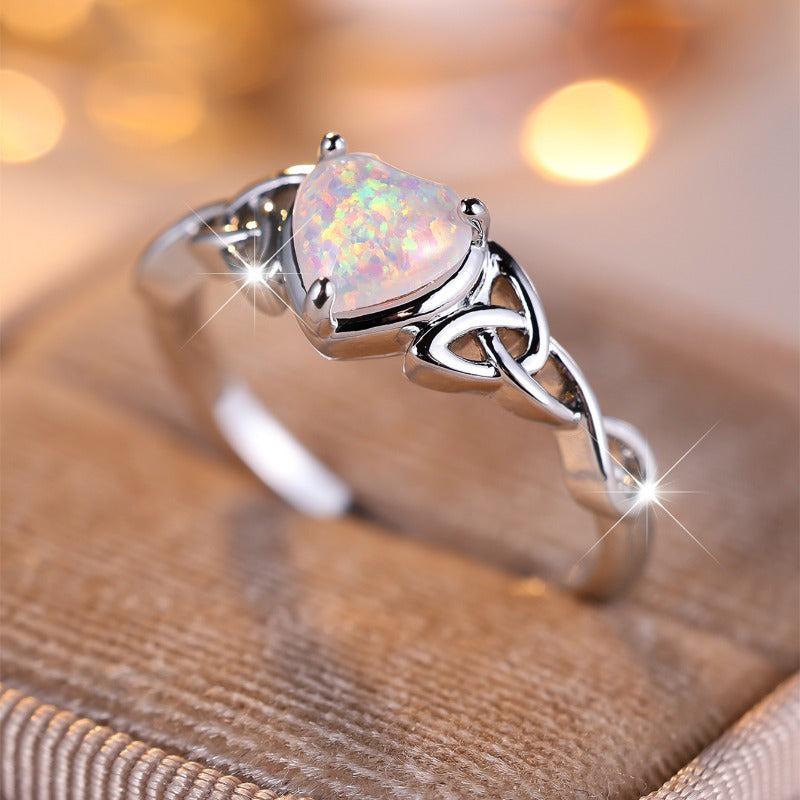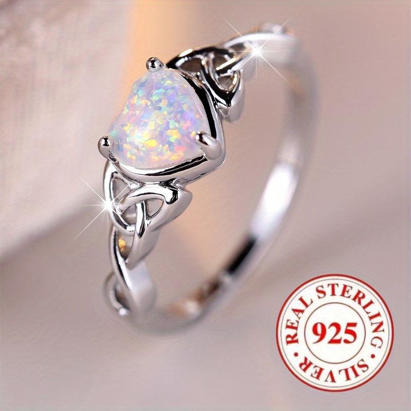 This beautiful 925 sterling silver heart-shaped ring features a synthetic opal, making it perfect for daily wear, parties, and engagement.