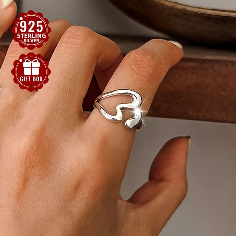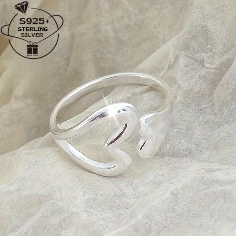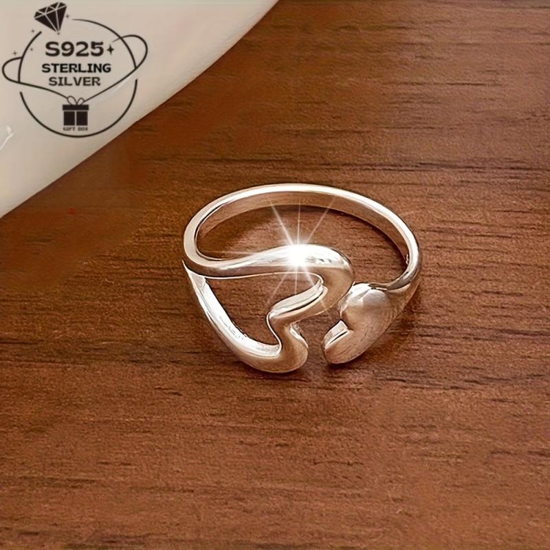 Enhance your style with this exquisite 925 pure silver open ring featuring a hollow love design. The adjustable fit ensures comfort and versatility.