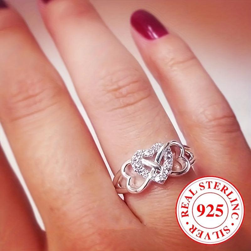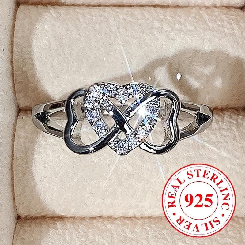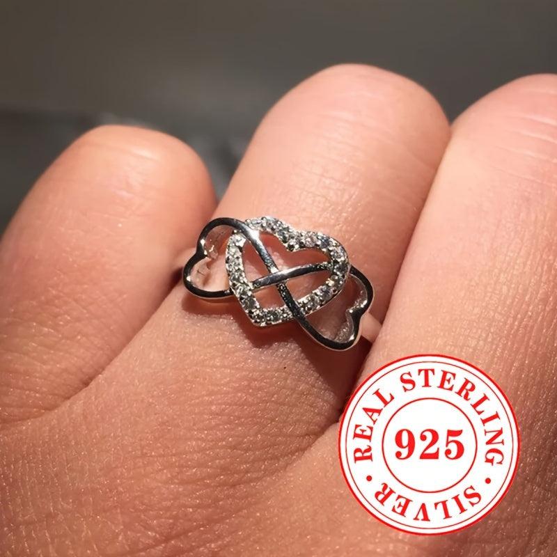 Stunning 925 sterling silver ring featuring an infinity heart design with sparkling synthetic zirconia stones. Perfect for daily wear, banquets, and as an engagement or wedding ring.