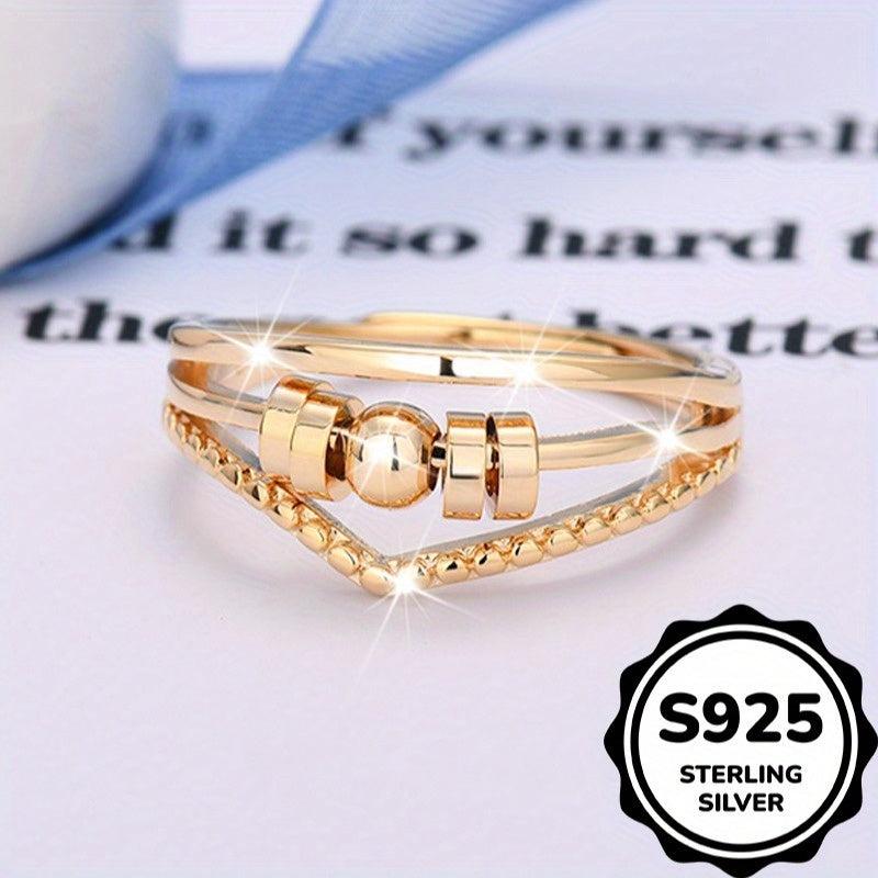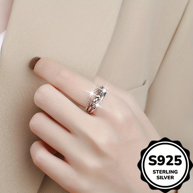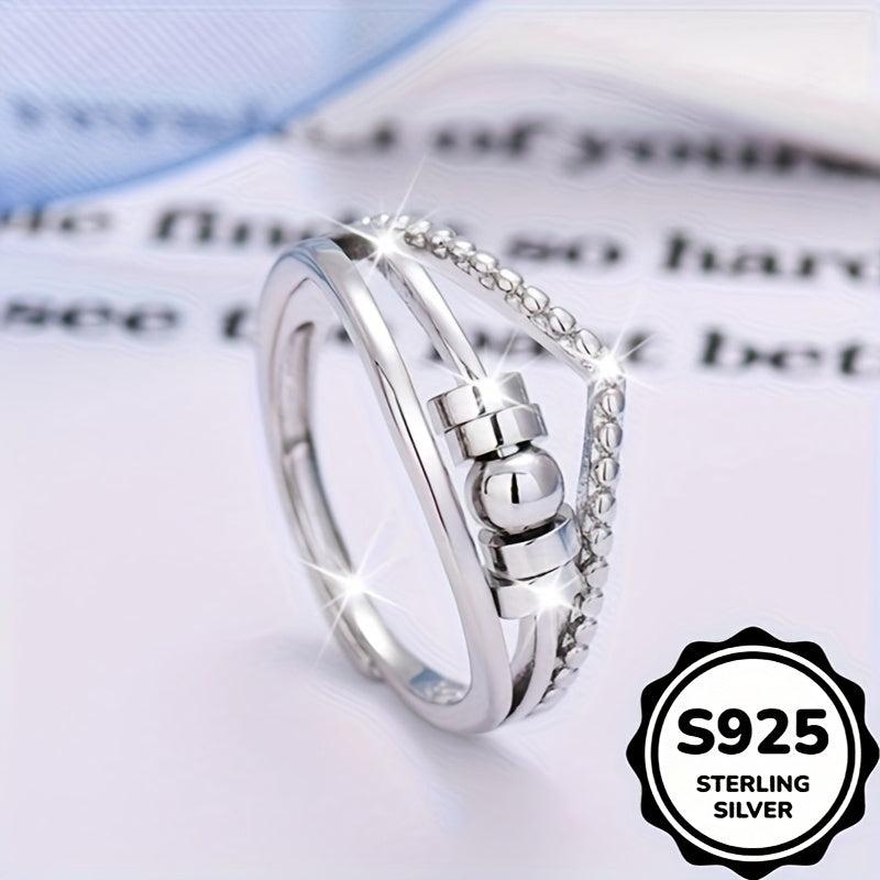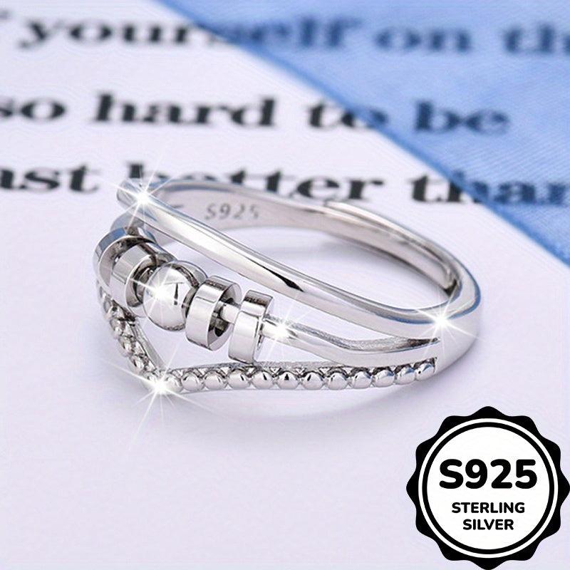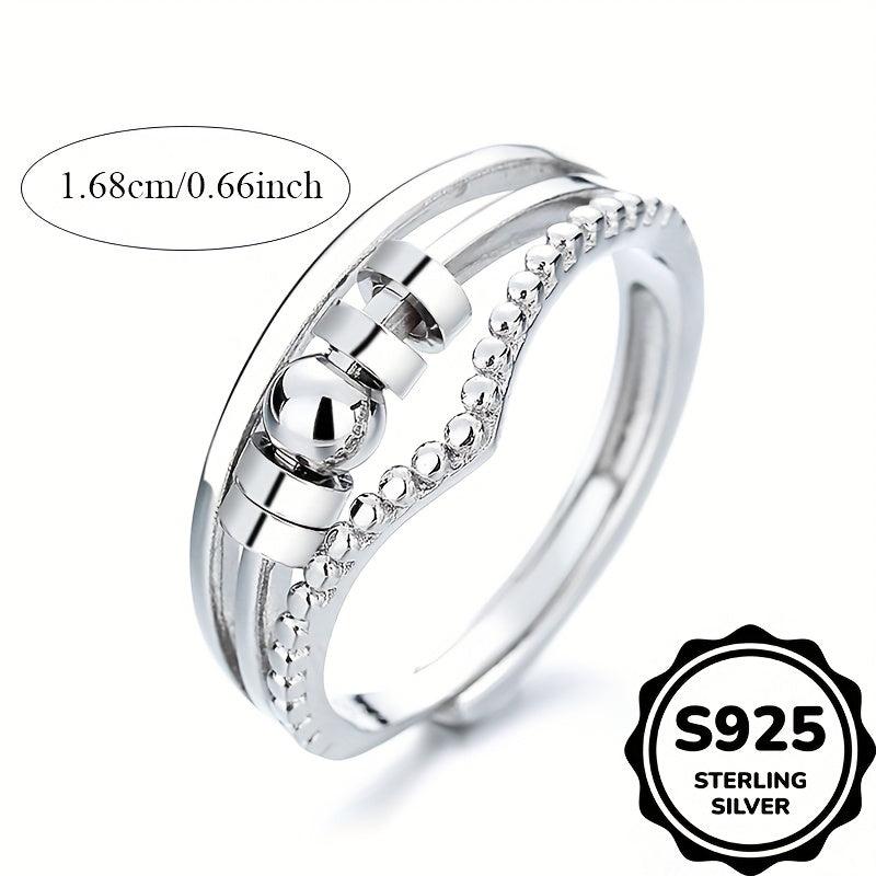 This 925 silver lucky bead ring for women features rotating beads and an adjustable opening. Perfect for daily wear to add a touch of style.