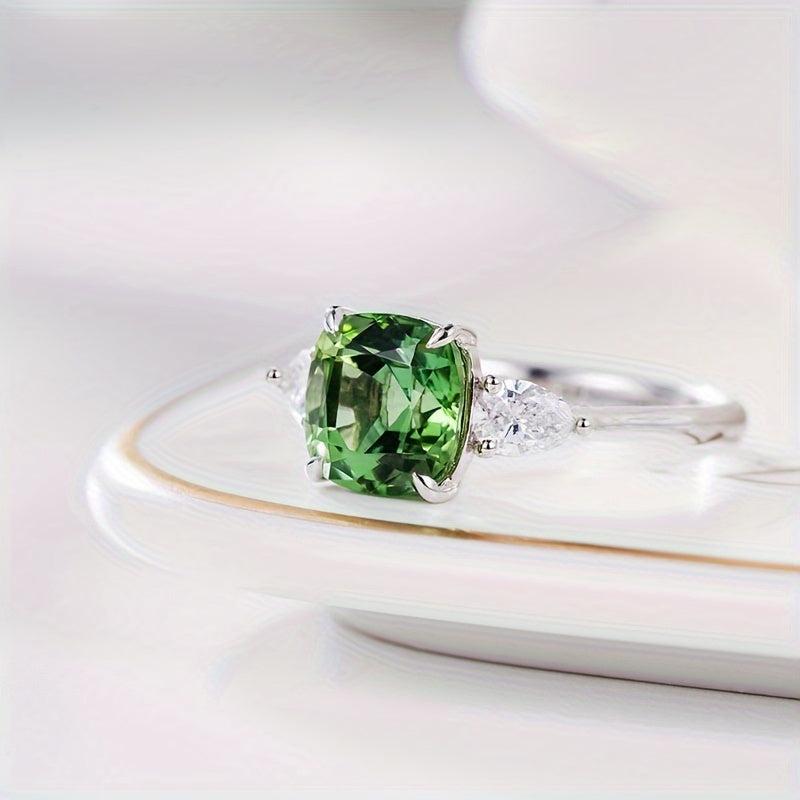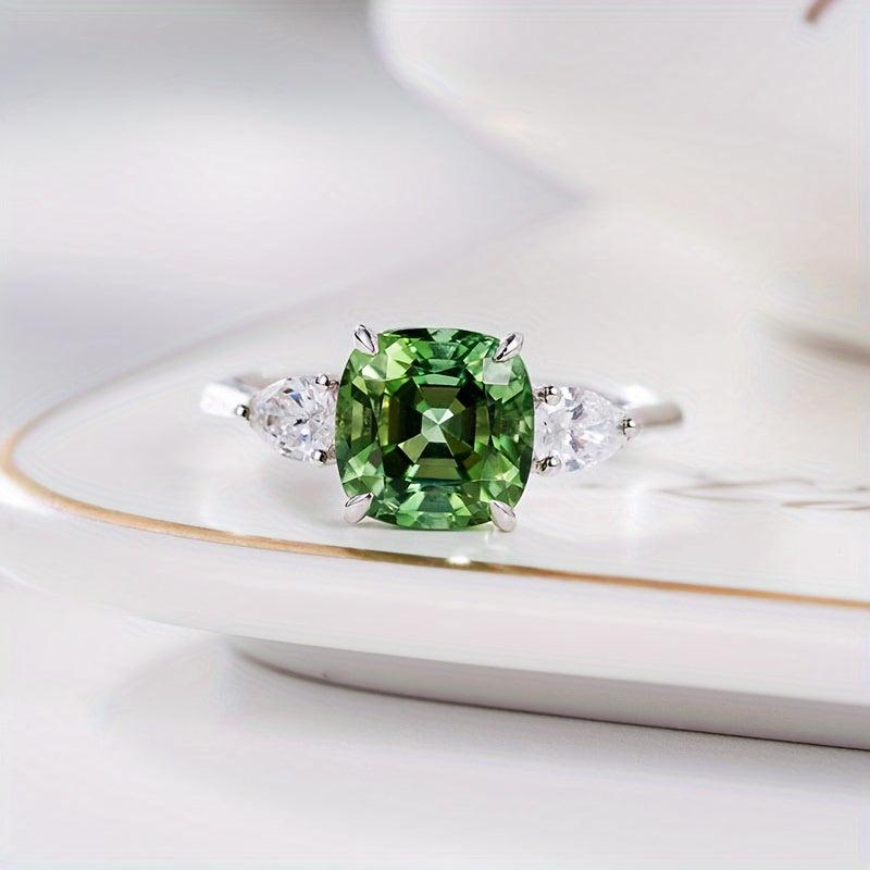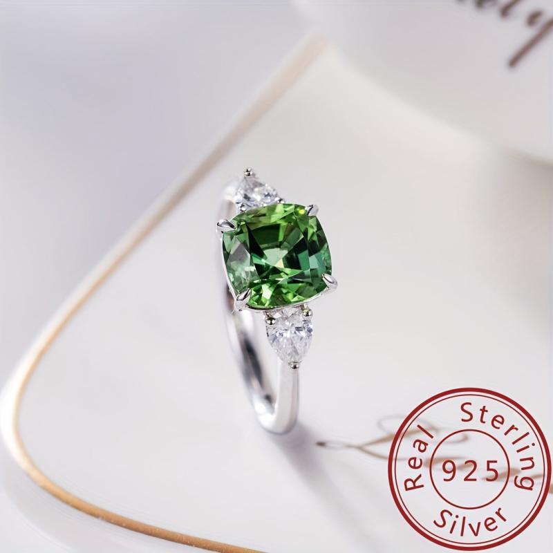 This stunning 925 sterling silver ring features sparkling green zirconia inlays, symbolizing elegance and beauty. Perfect for engagement or wedding wear.