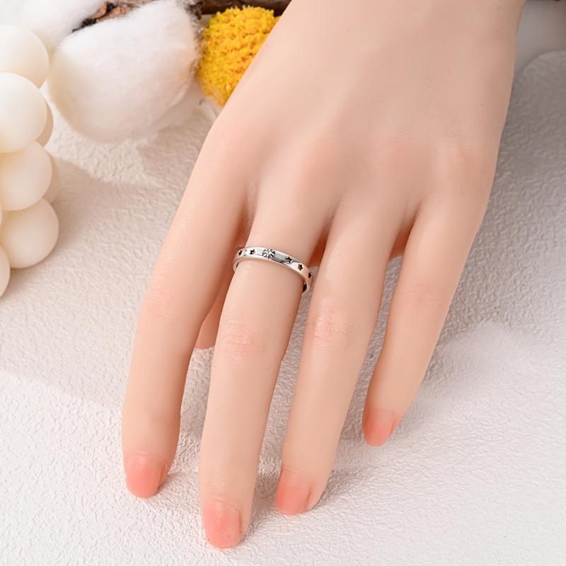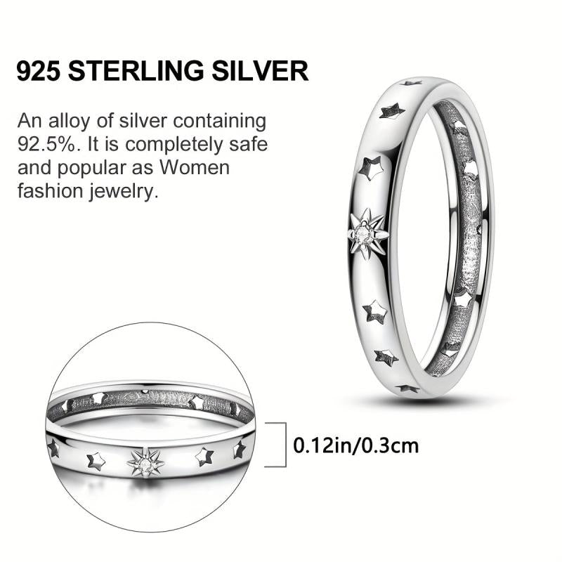 Elegant 925 silver star ring designed for women, perfect for wedding, engagement, or birthday gift. The minimalistic style adds a touch of sophistication to any outfit.