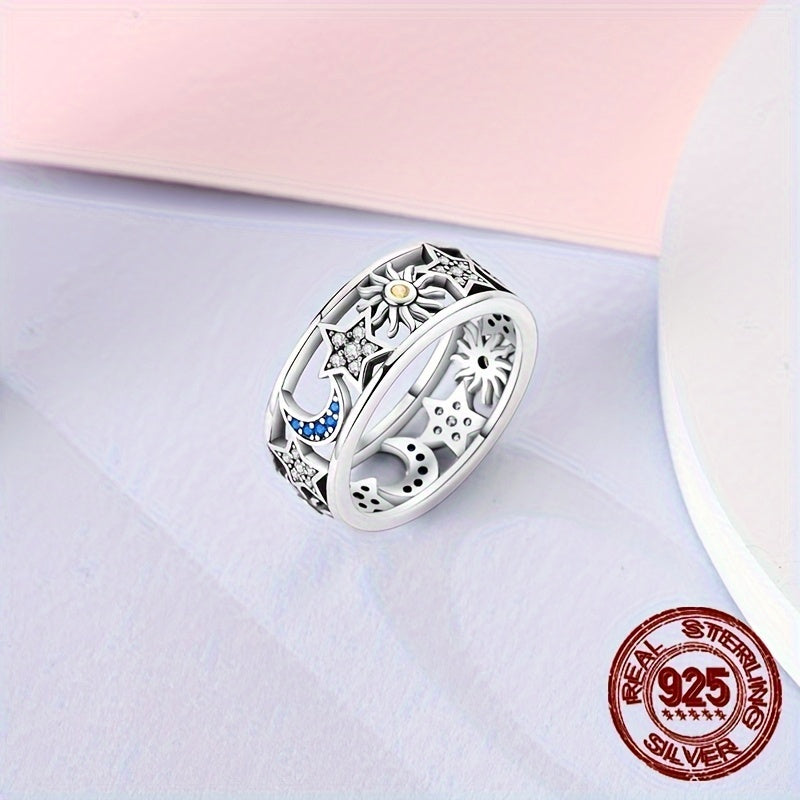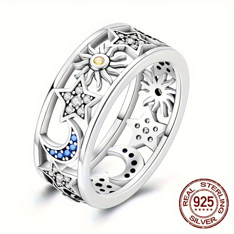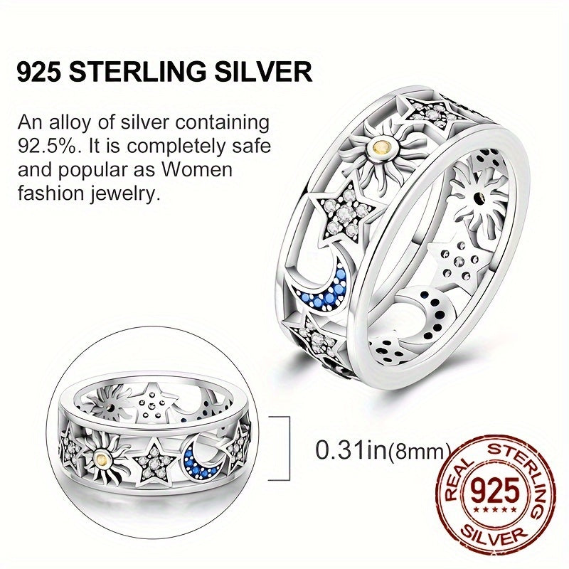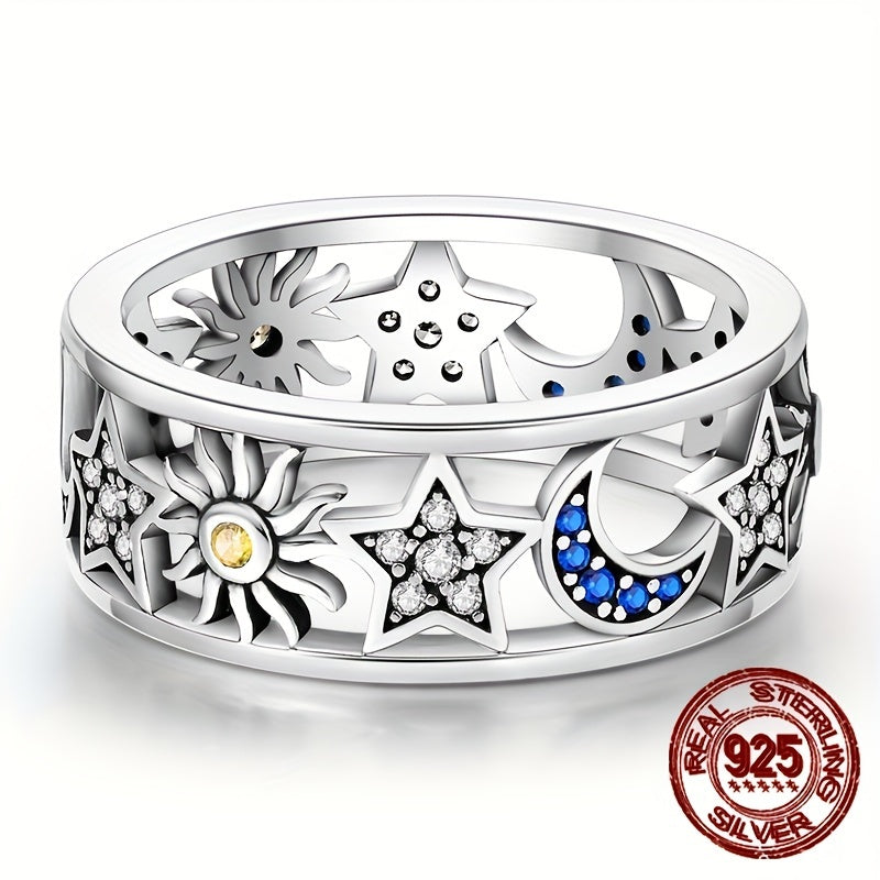 This stunning 925 Sterling Silver ring features a design of sun, moon, and star with inlaid zirconia. Perfect accessory for any occasion, ideal gift for Eid or Ramadan.