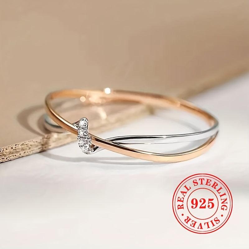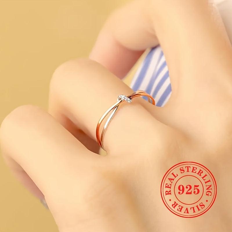 This beautiful twist band ring is made of solid 925 sterling silver and features tiny zirconia inlays for a touch of sparkle. Perfect for everyday wear, this ring is both elegant and stylish.