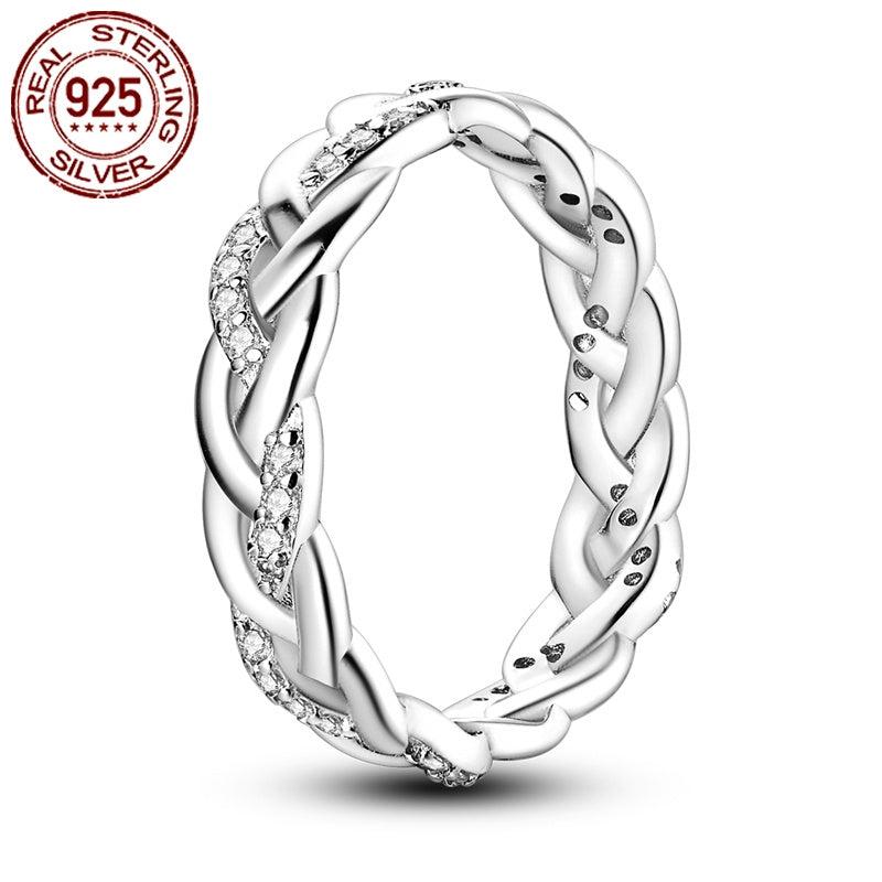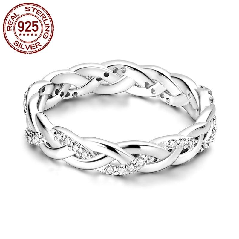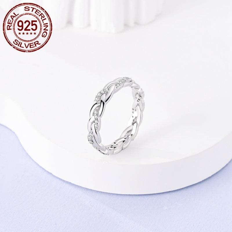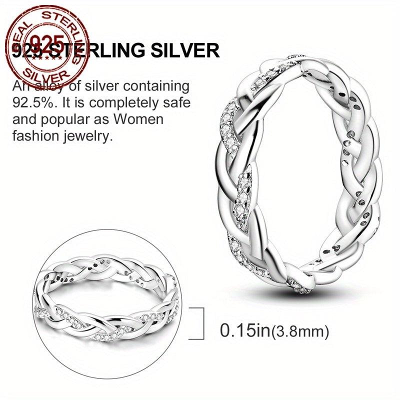This stunning 925 sterling silver ring features intricate weave design and sparkling cubic zirconia stones. It is hypoallergenic and perfect for any occasion like weddings, parties, birthdays, or Christmas gifts.