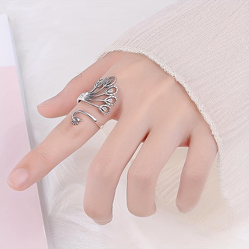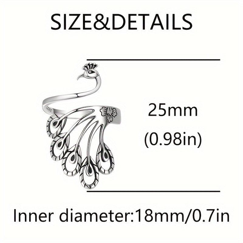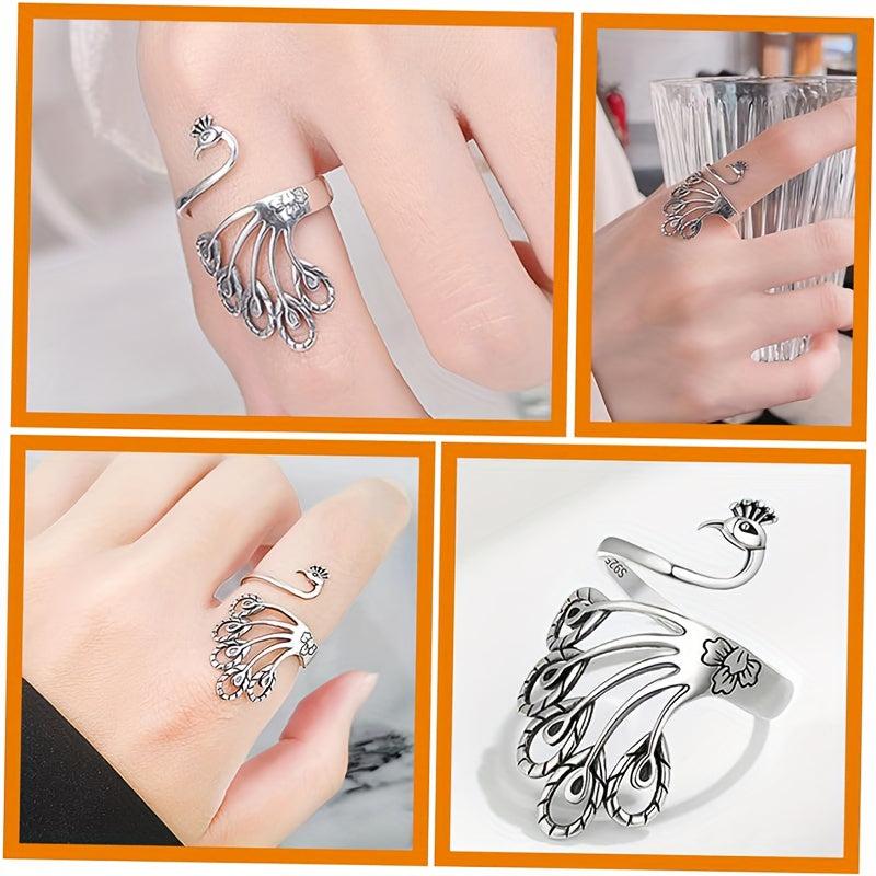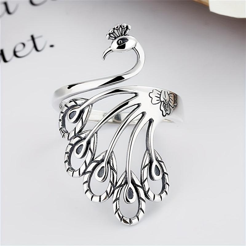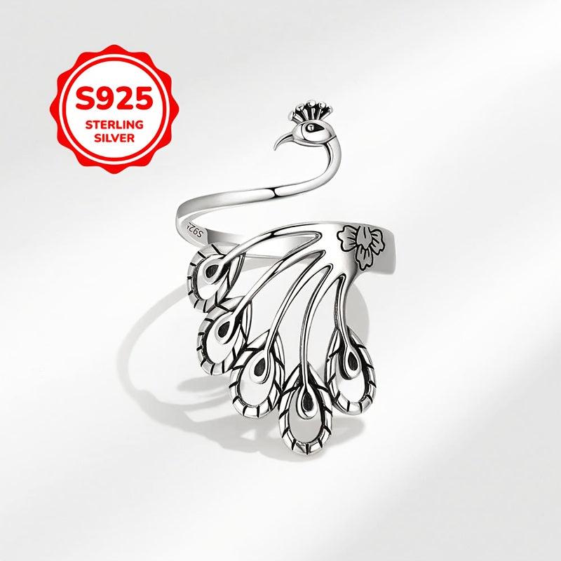 This 925 pure silvery women's ring features a peacock wrap style design. It is adjustable and low allergy, making it a perfect birthday gift. Weight: 3.1g.