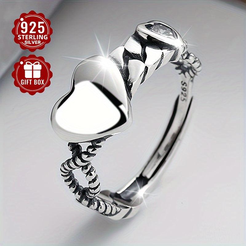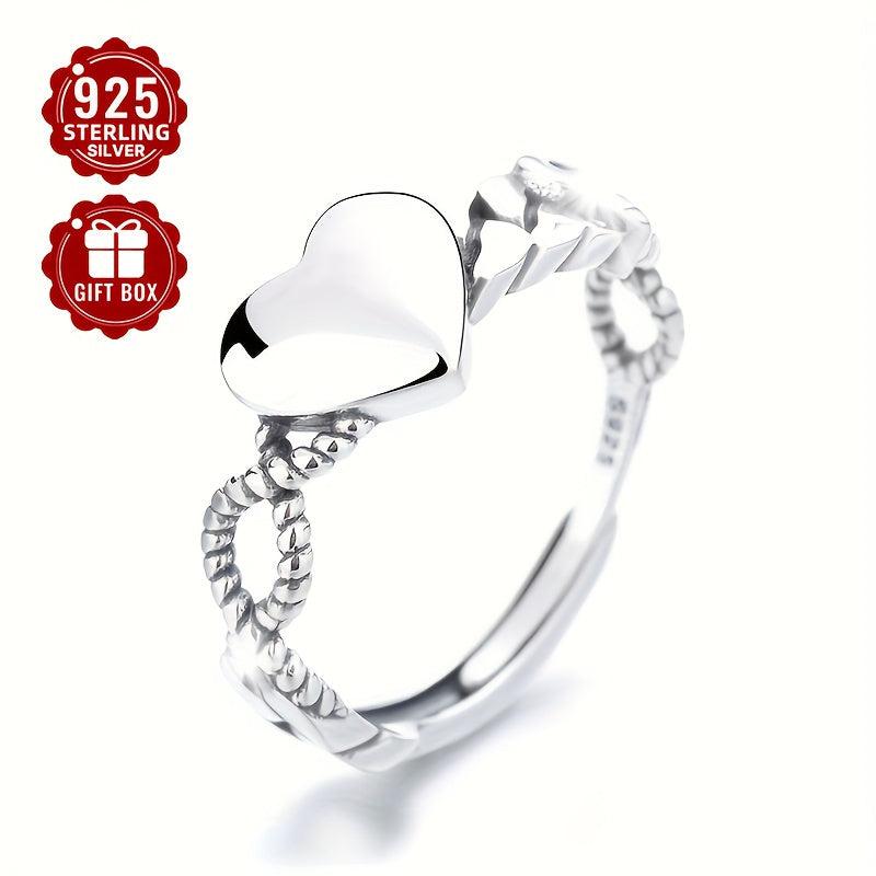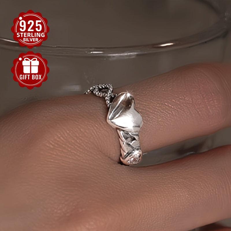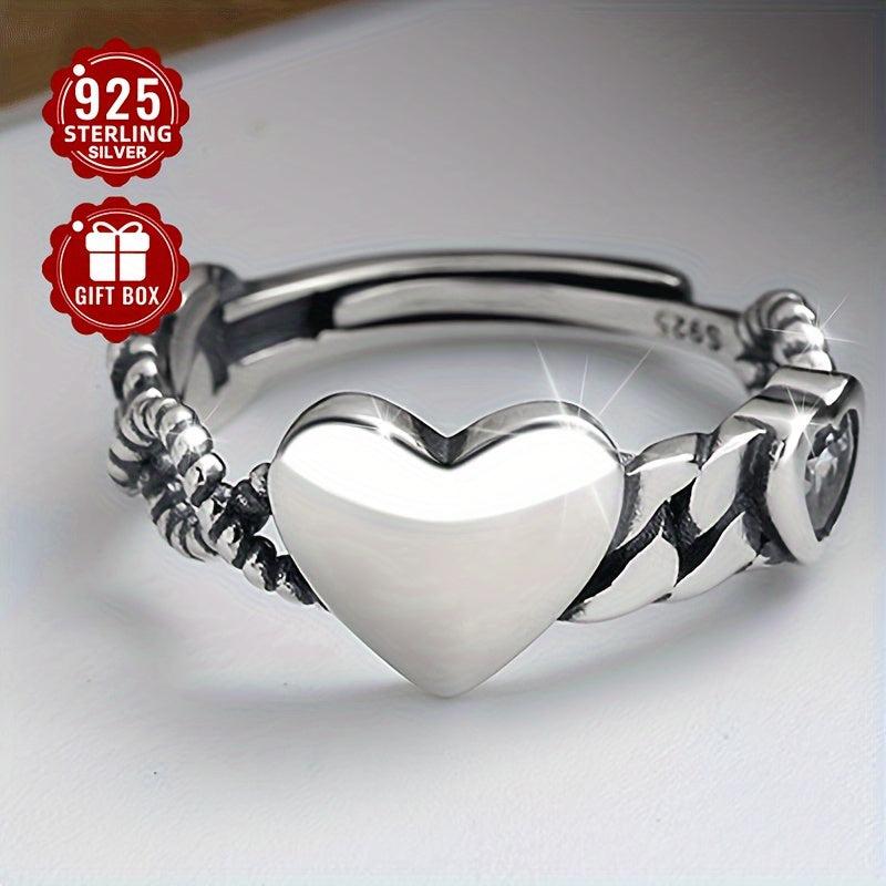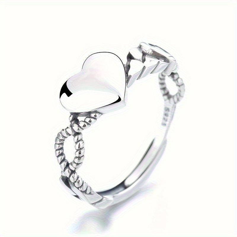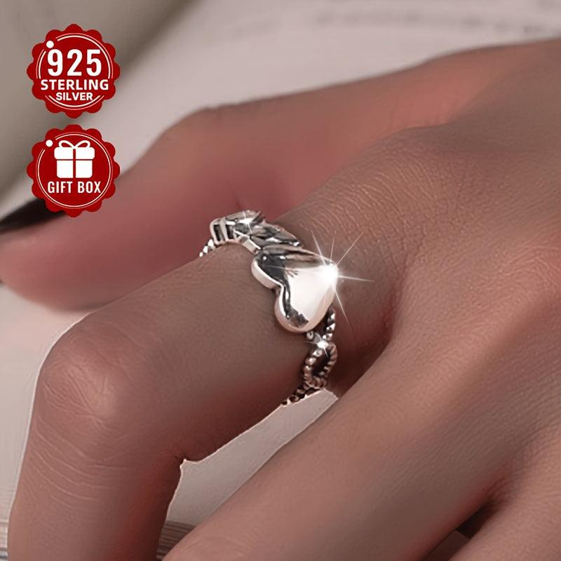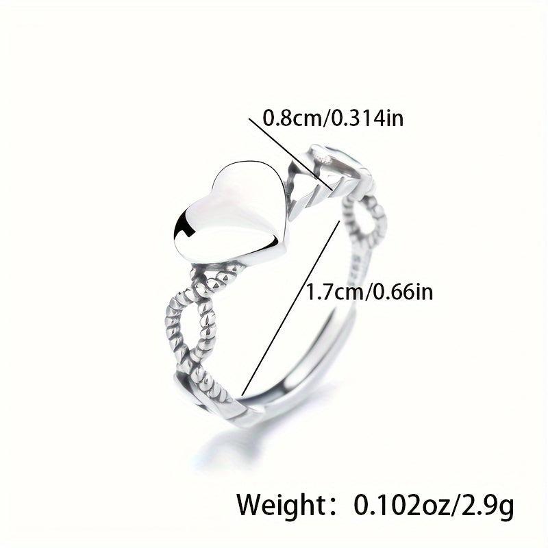 This open ring is made of high-quality 925 sterling silver with a heart design, featuring a vintage style. It is adjustable to fit any finger size and is a fine index ring for a touch of elegance.