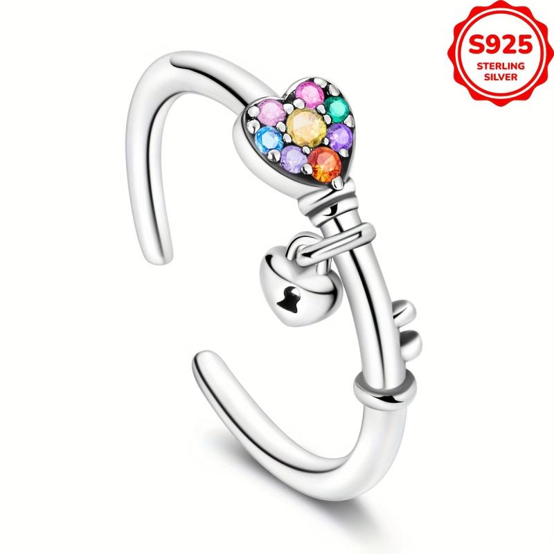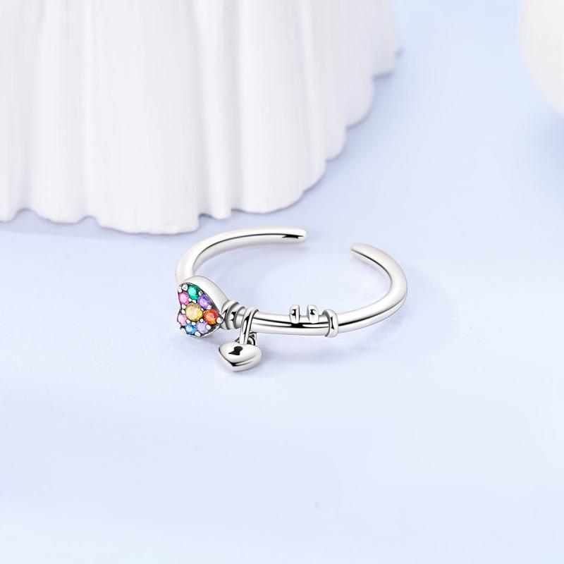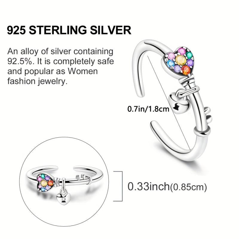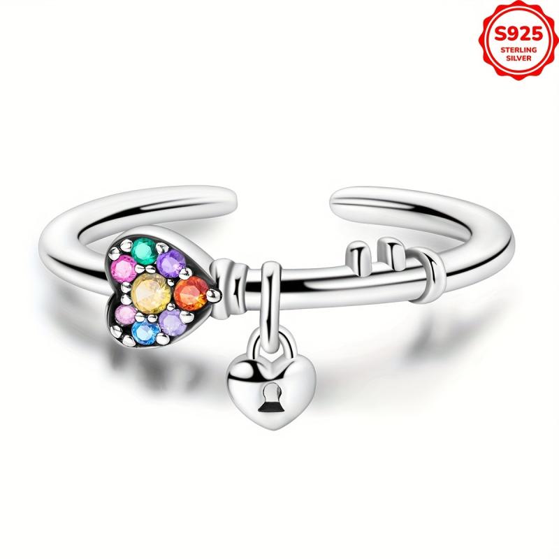 This stunning 925 sterling silver ring features colorful zirconia stones in a love lock design. It is perfect for weddings, engagements, birthdays, and other special occasions.