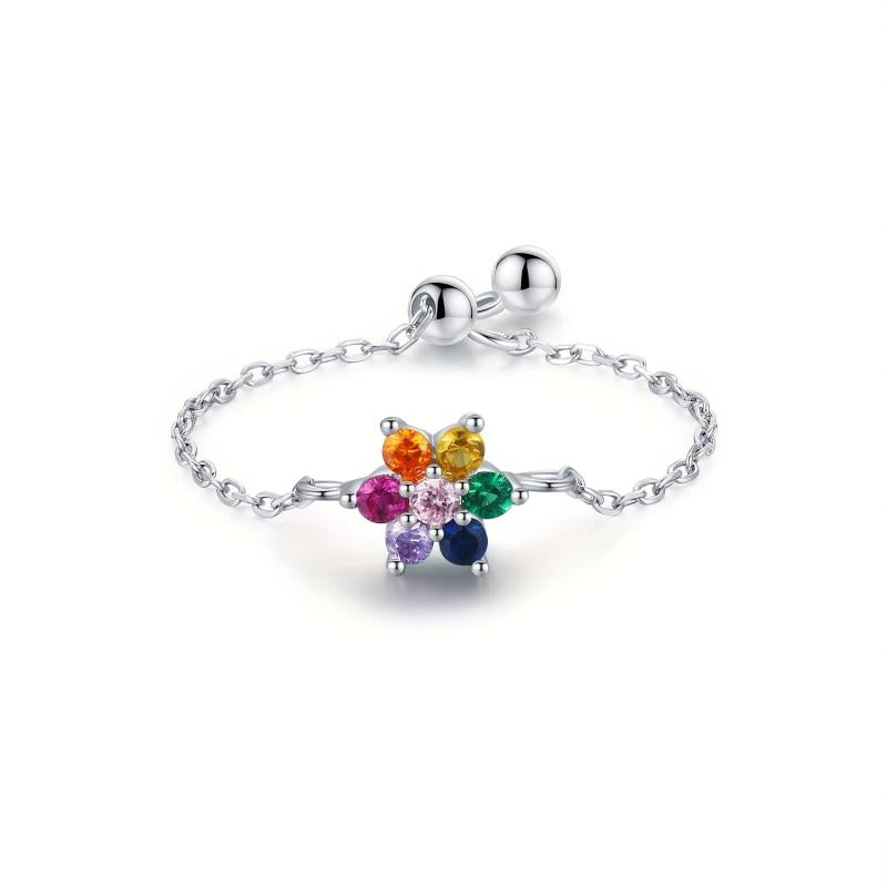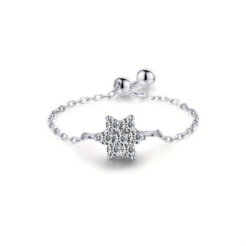 This adjustable ring features a beautiful zirconia flower that adds a touch of sparkle to your look. Perfect for everyday wear and parties, this lightweight ring weighs only 0.8g.